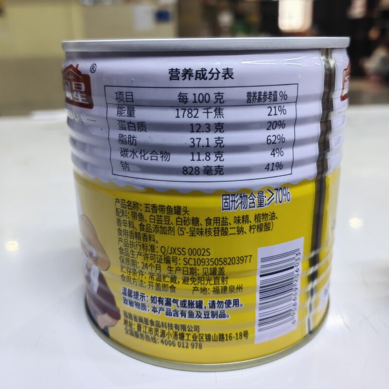 闽星五香带鱼罐头406g包邮即食海鲜佐餐凉菜酒店特色菜黄花鱼罐头