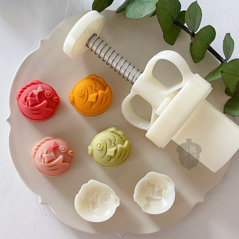 橡树果子卡通新年迷你好运锦鲤月饼模20g中秋节小鱼绿豆糕手压模