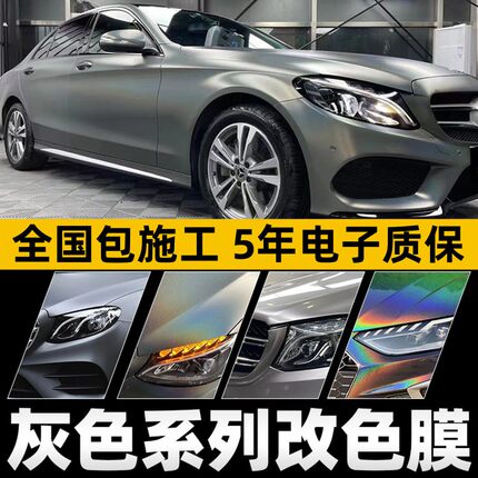 电光金属深遂灰汽车改色膜战斗灰纳多灰山灰钛灰全车贴膜包贴施工