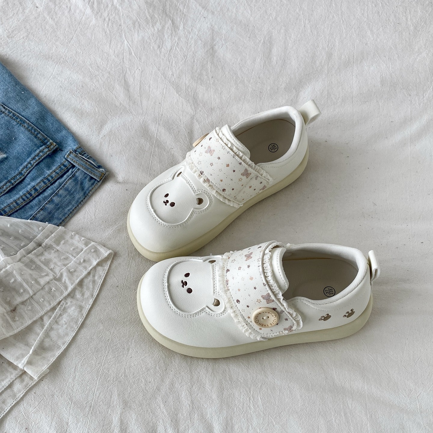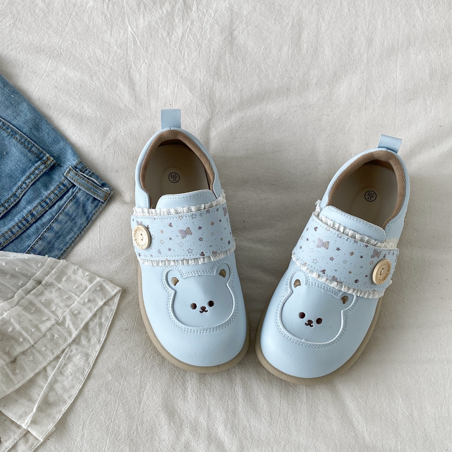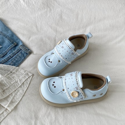 喜叔奶蓝色可爱小熊魔术贴板鞋女2026春季新款厚底小白鞋勃肯单鞋
