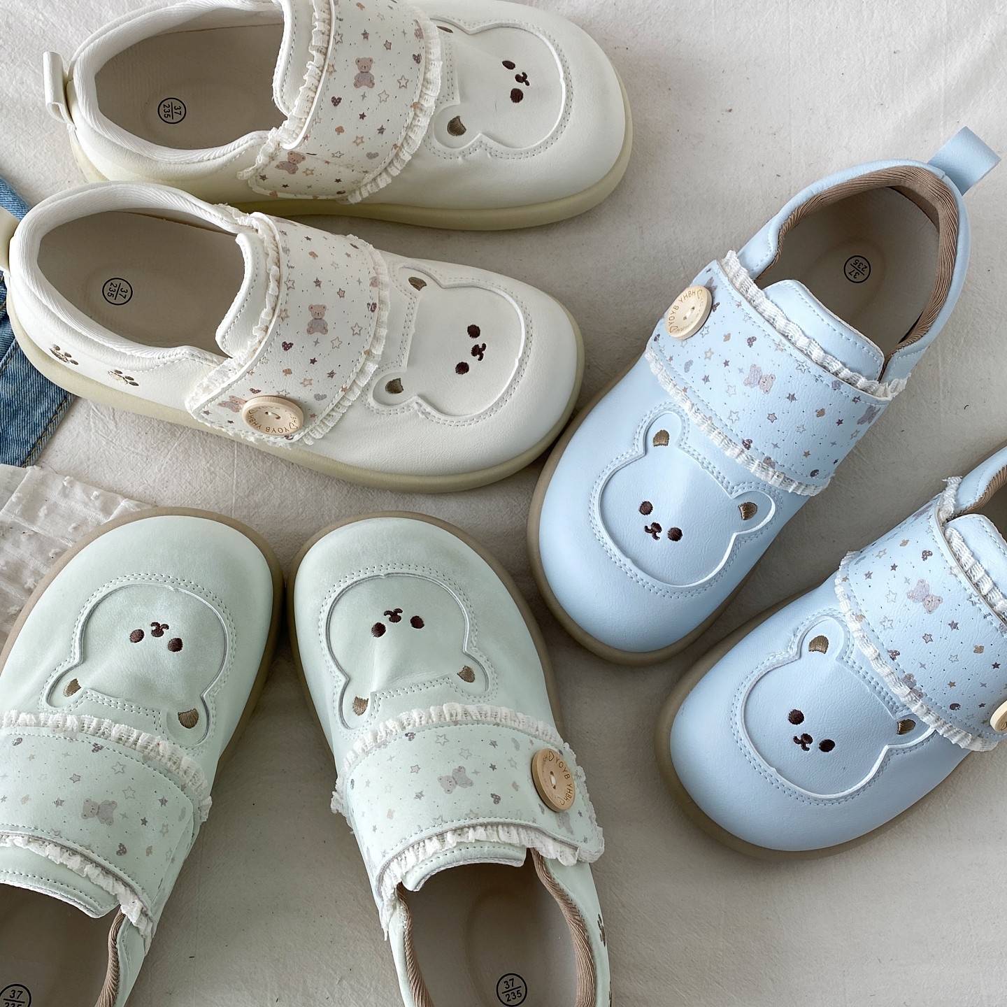 可爱卡通小熊板鞋厚底全包勃肯鞋