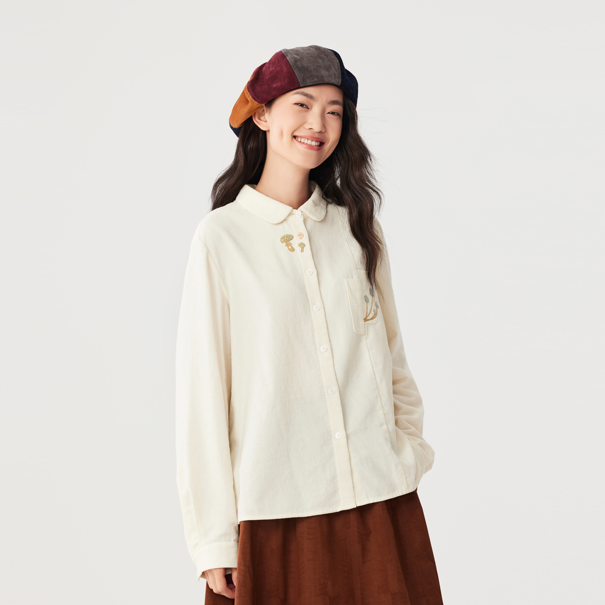 飞鸟和新酒商场同款时尚女装复古白色短款衬衫女FZ470082009
