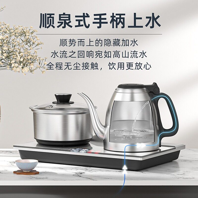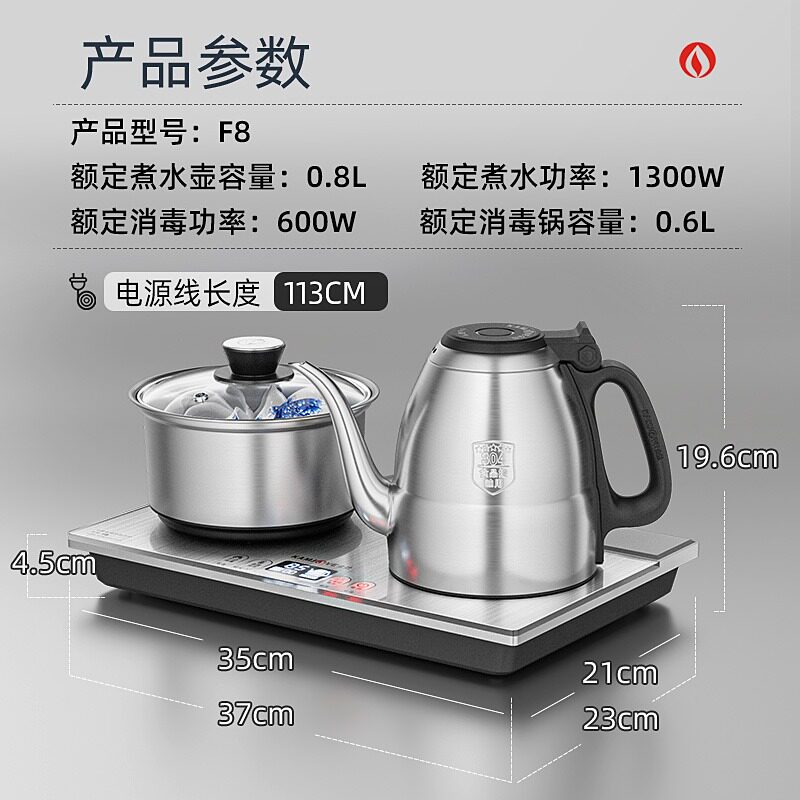 金灶F8银色全智能手柄上水烧水壶保温一体茶台一键智能恒温热水壶