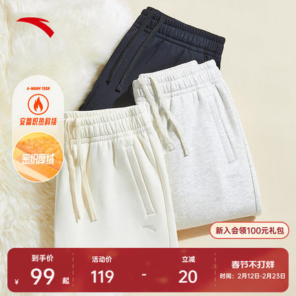 安踏奶芙裤丨卫裤春季加绒女裤新款针织运动裤宽松束脚裤休闲长裤