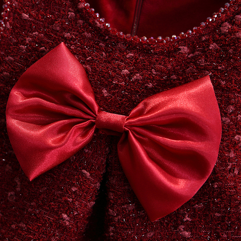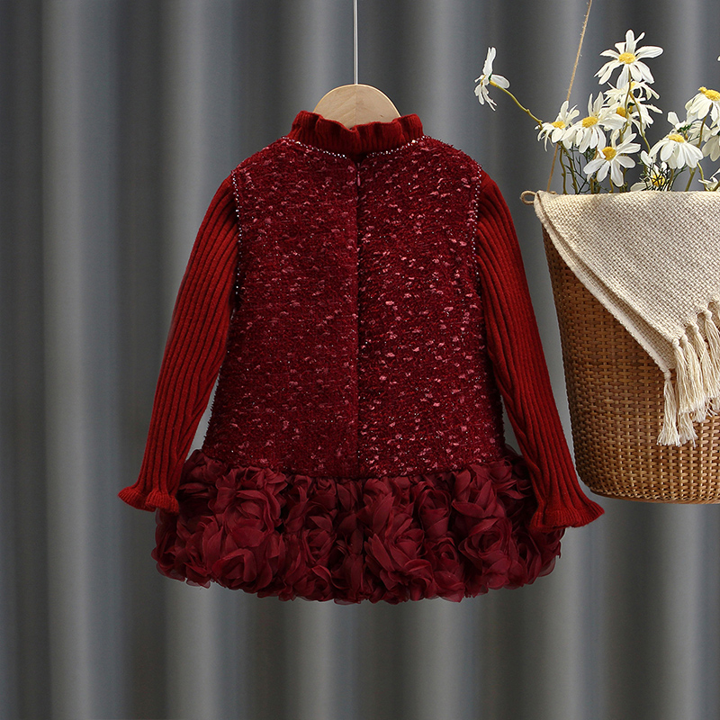 女童公主裙套装冬季女孩新年红色毛衣背心裙两件套时髦洋气童装