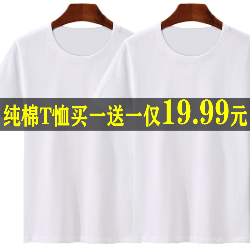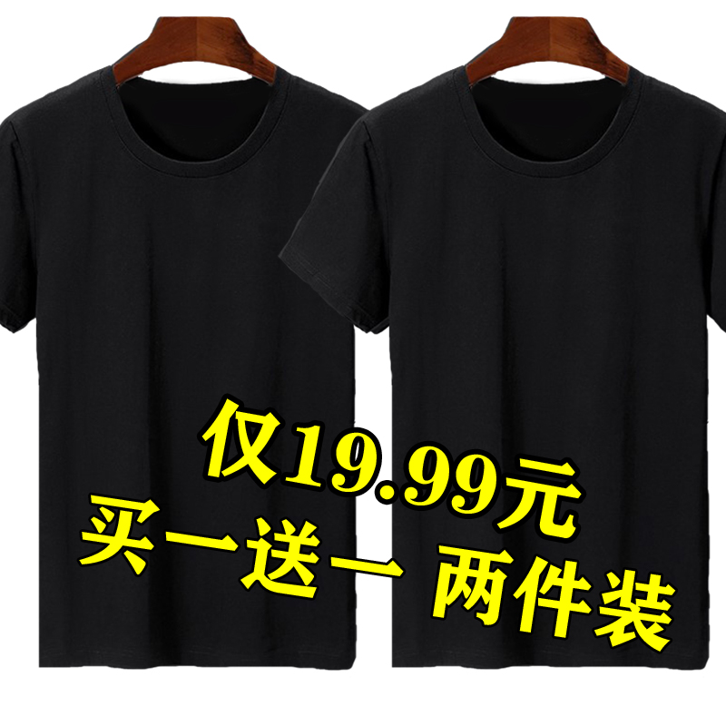 (买一送一)纯色短袖打底衫T恤纯白色体桖男体恤纯黑内搭衣服t桖