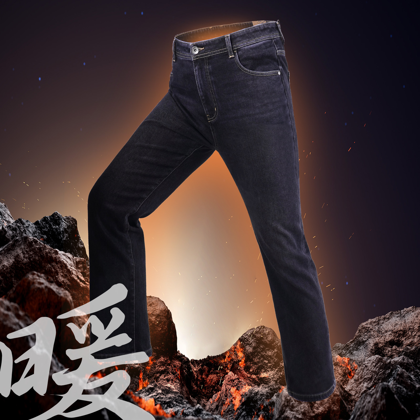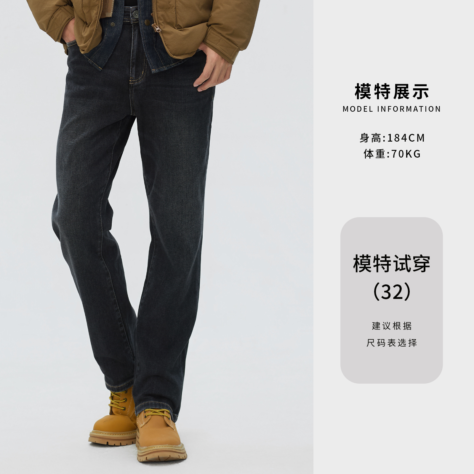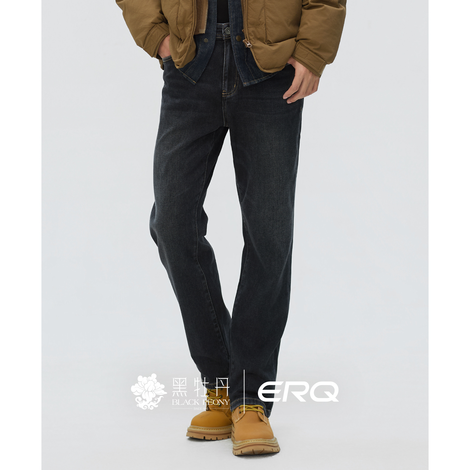 ERQ【抓绒加厚】901男款复古直筒宽松牛仔裤男士冬休闲弹力做旧