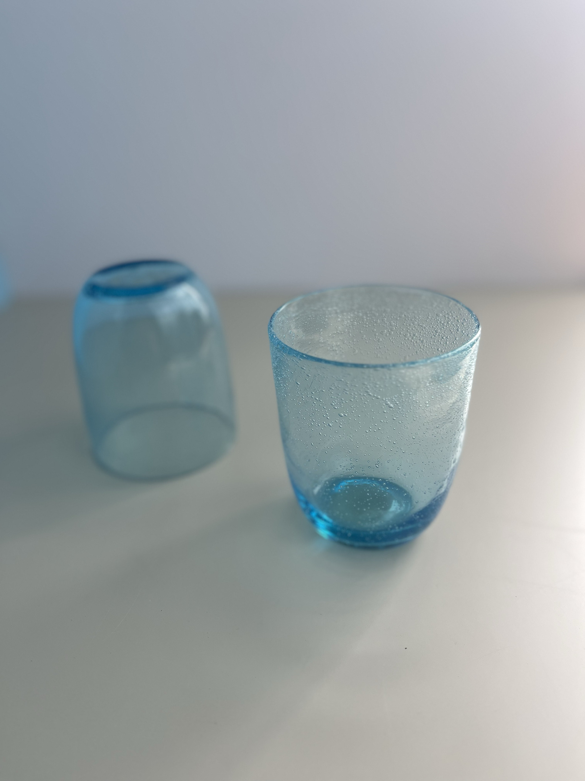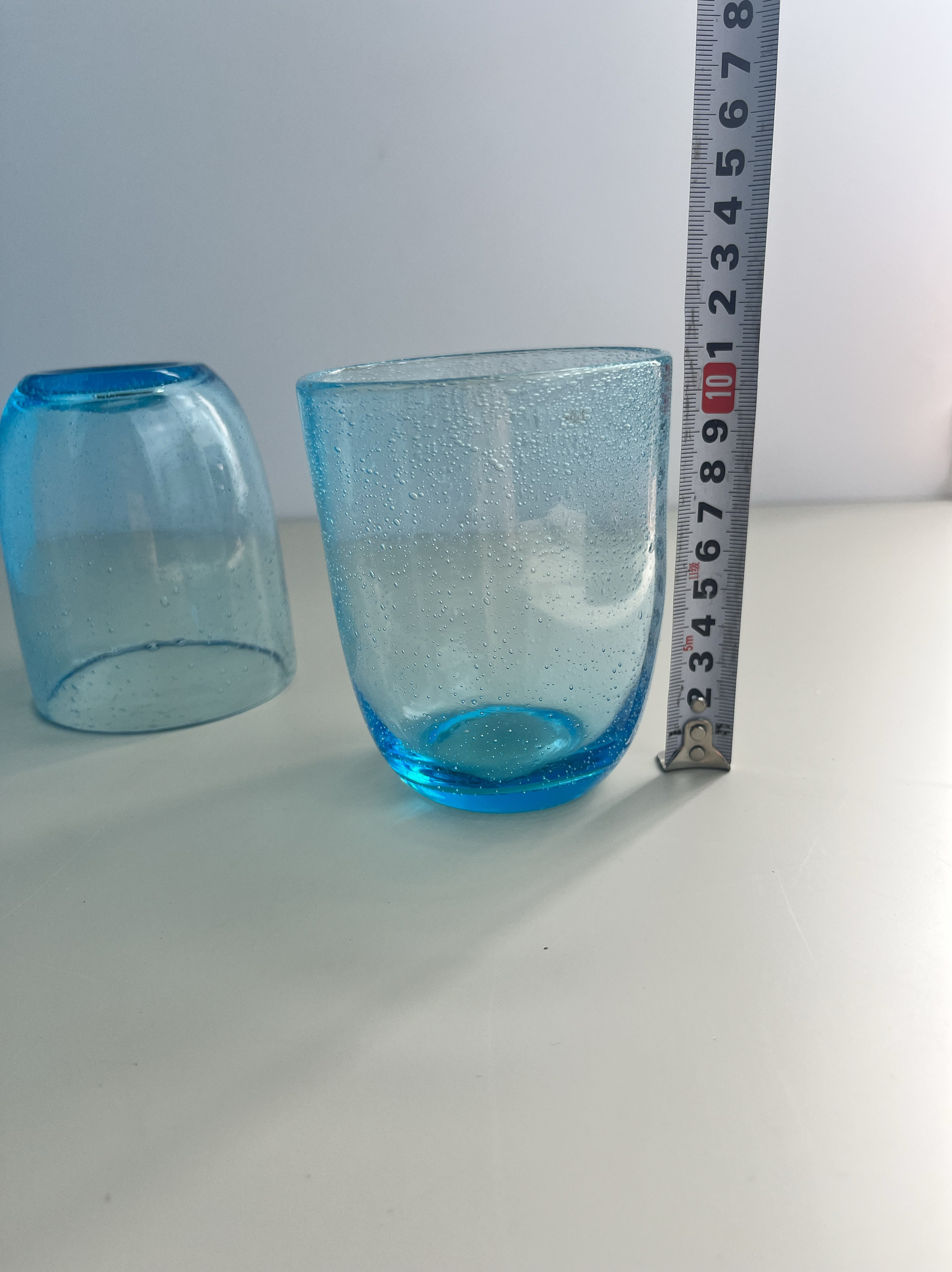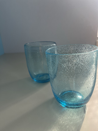 两只装中古vintage蓝色泡泡玻璃杯冷饮杯果汁杯手机实拍