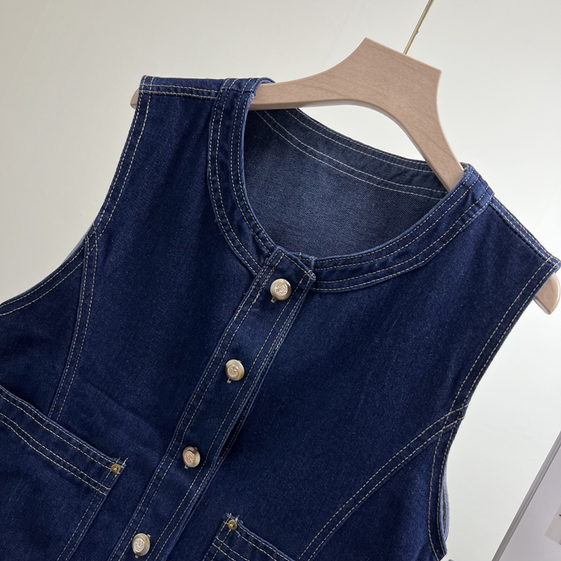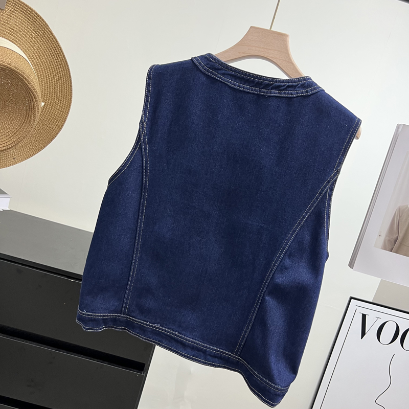 高端轻奢~小he系!复古明线牛仔马甲叠穿背心外搭坎肩马夹女秋新