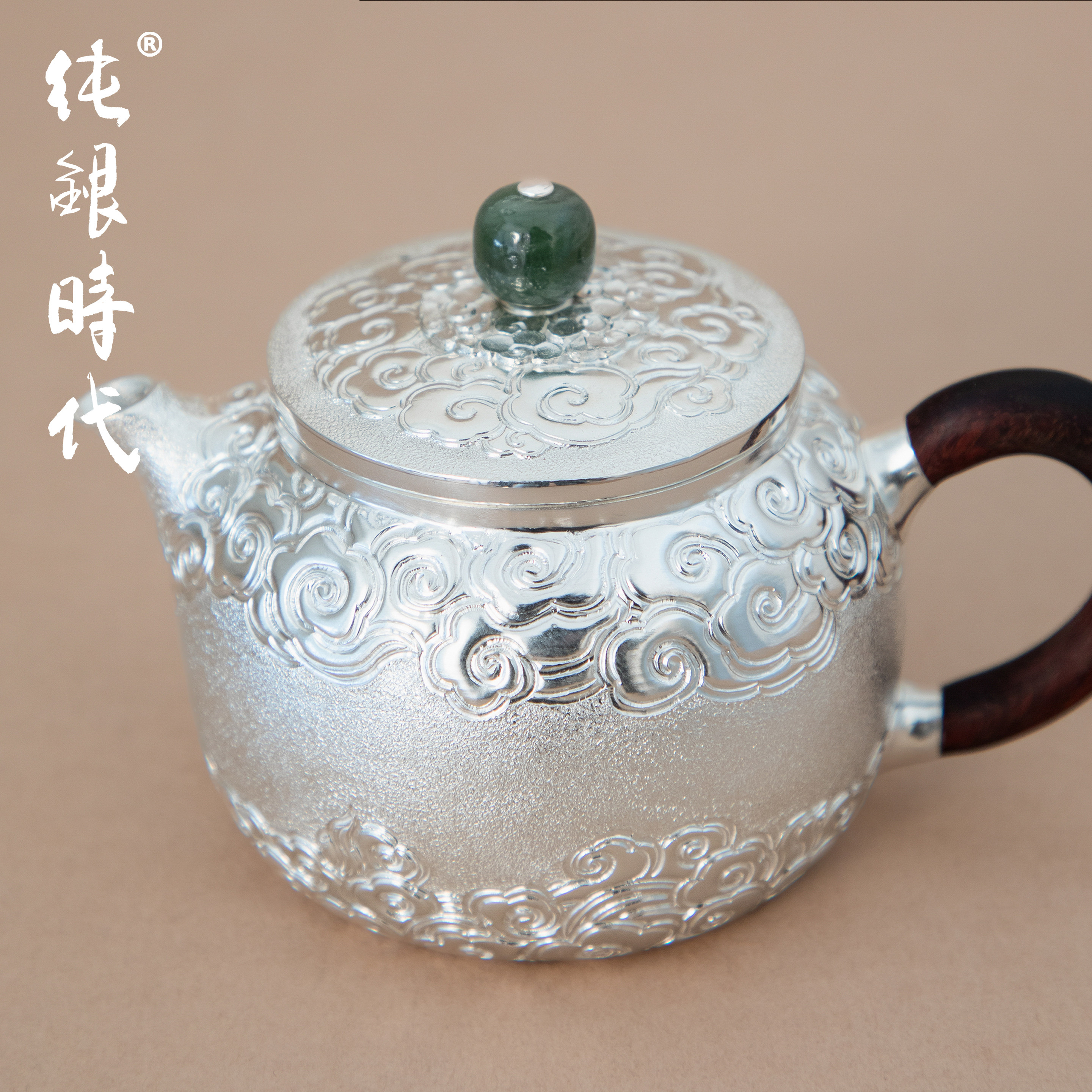 纯银时代 浮云泡茶壶纯银999手工一张银打茶壶送礼家用银壶150ml