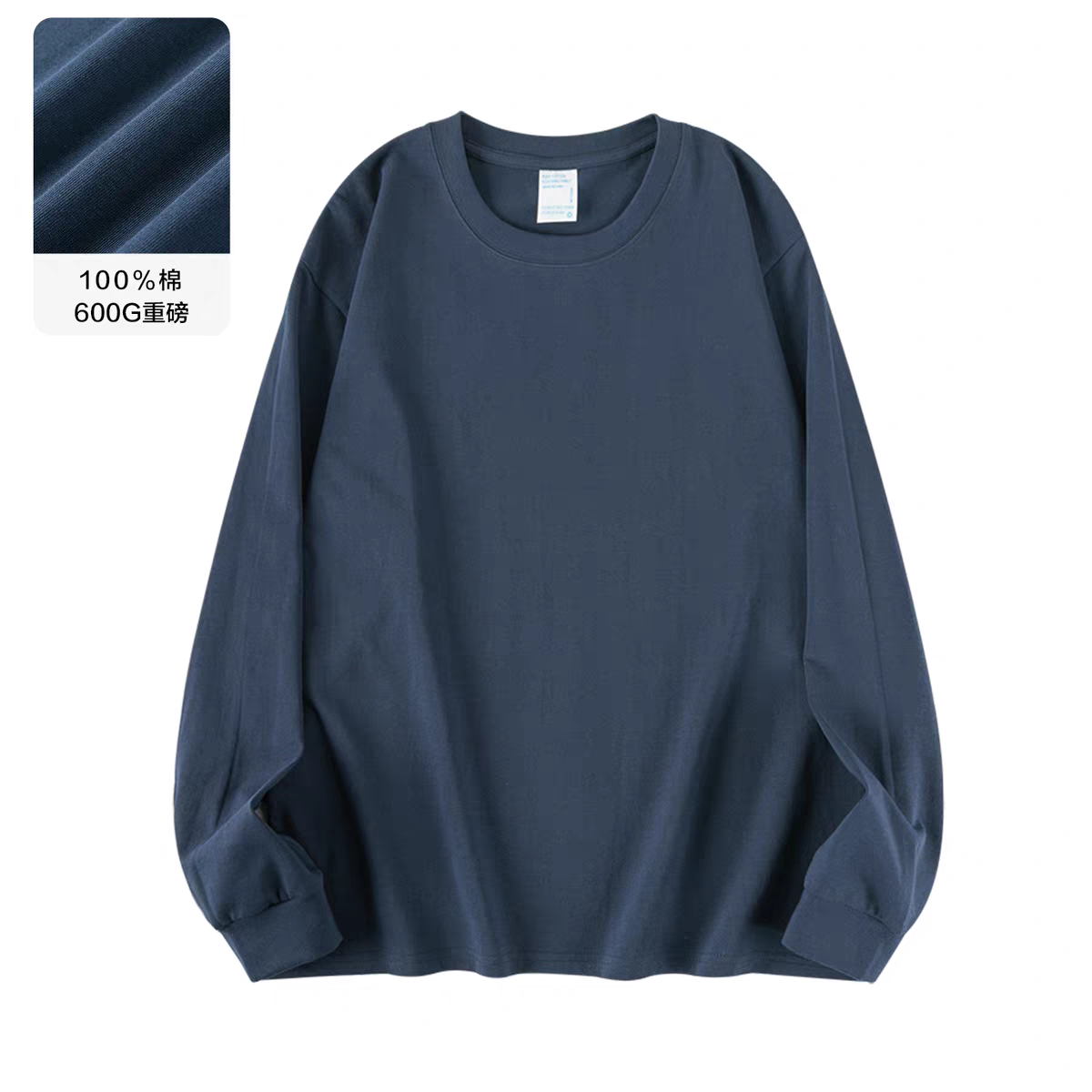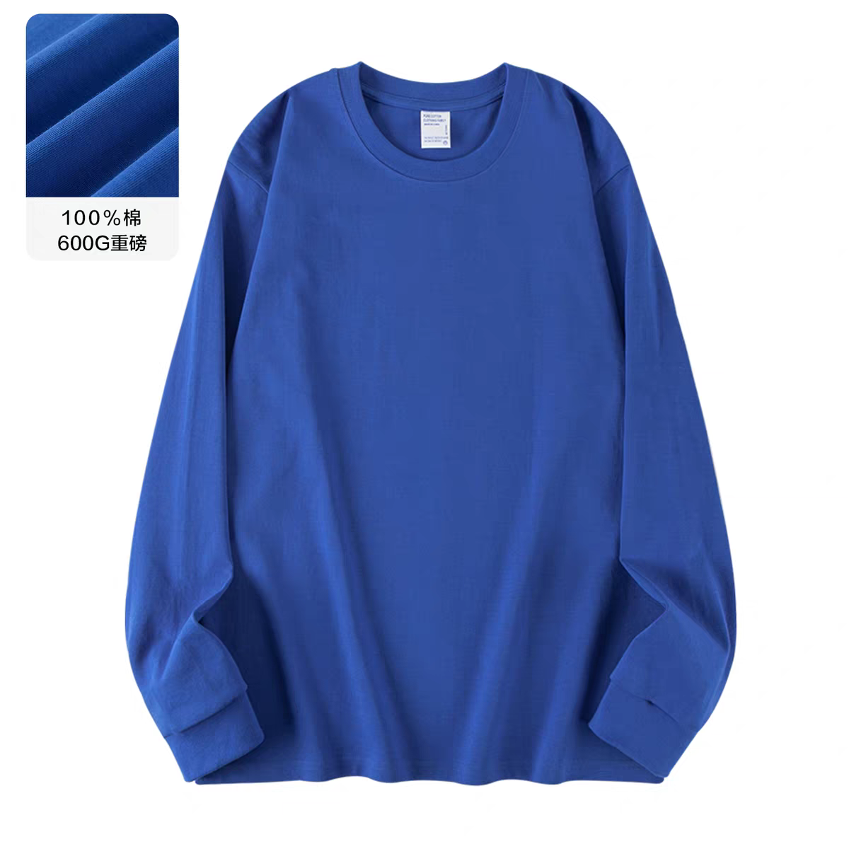 白色600g重磅秋冬季新款纯棉长袖t恤男女宽松休闲百搭厚实不透潮