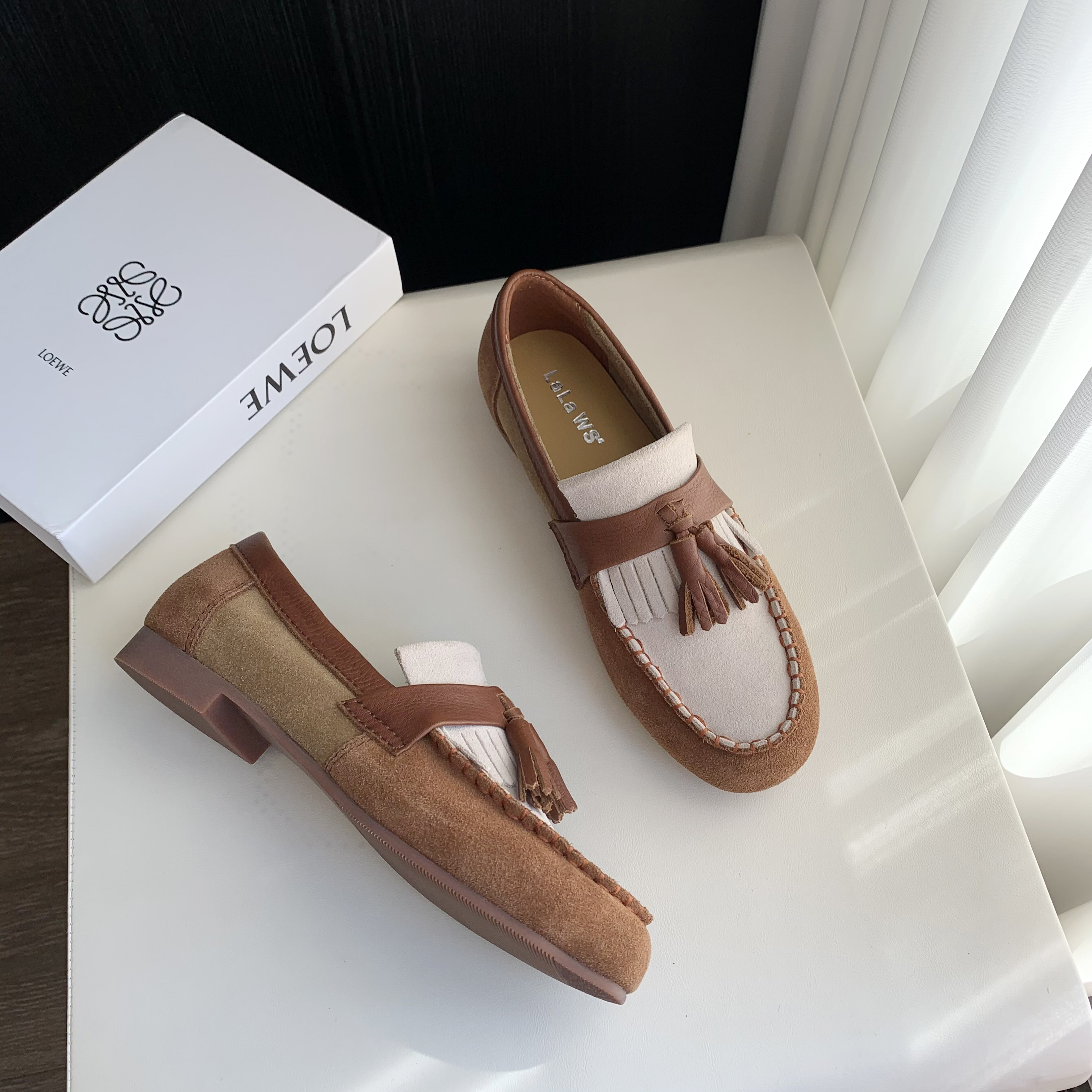 流苏乐鞋女一脚蹬复古英伦风小皮鞋磨砂皮真皮平底单鞋懒人休闲鞋