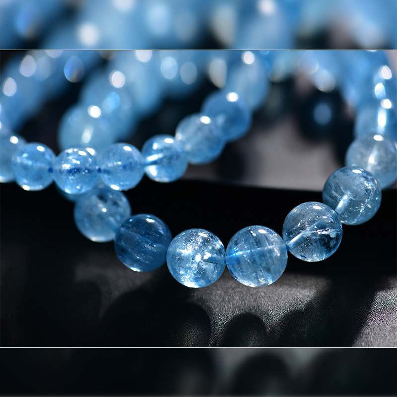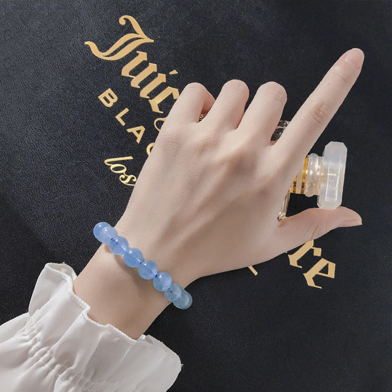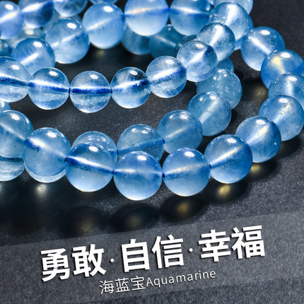天然冰种海蓝宝手链女巴西蓝色宝石水晶单圈手串时尚饰品礼物