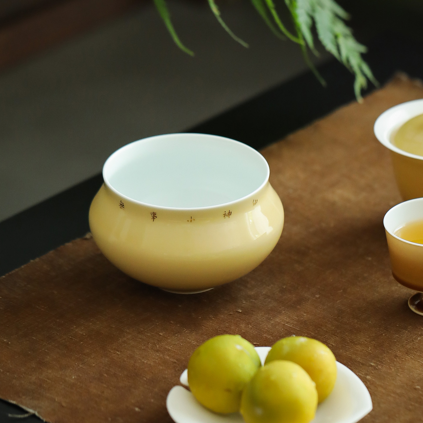 雅辑 蜜蜡黄/烟粉双色水洗 茶洗建水 茶道配件