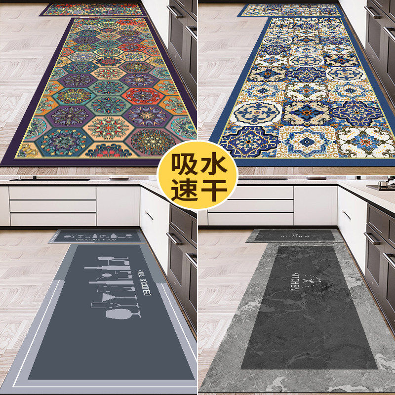 硅藻泥美式复古厨房地垫专用防油吸水垫耐脏防滑脚垫新款加厚地毯