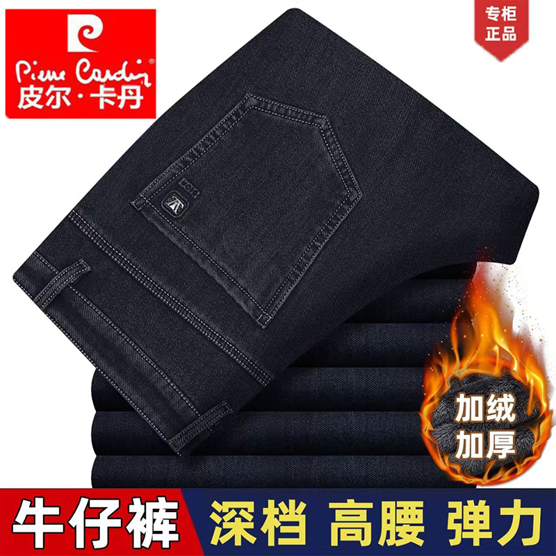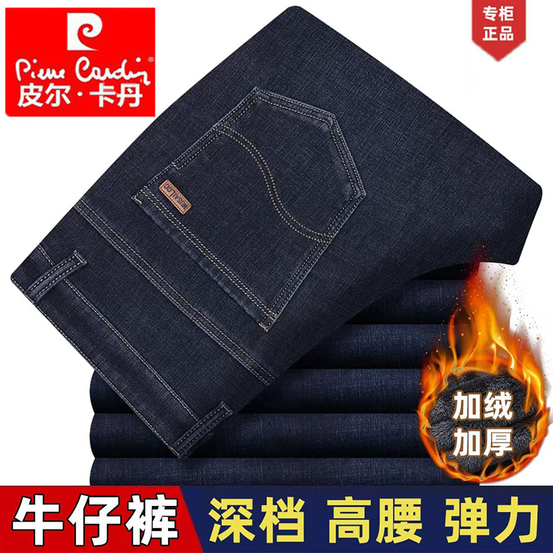 皮尔卡丹中年男裤直筒宽松牛仔裤中老年男裤高腰深档爸爸加绒裤子