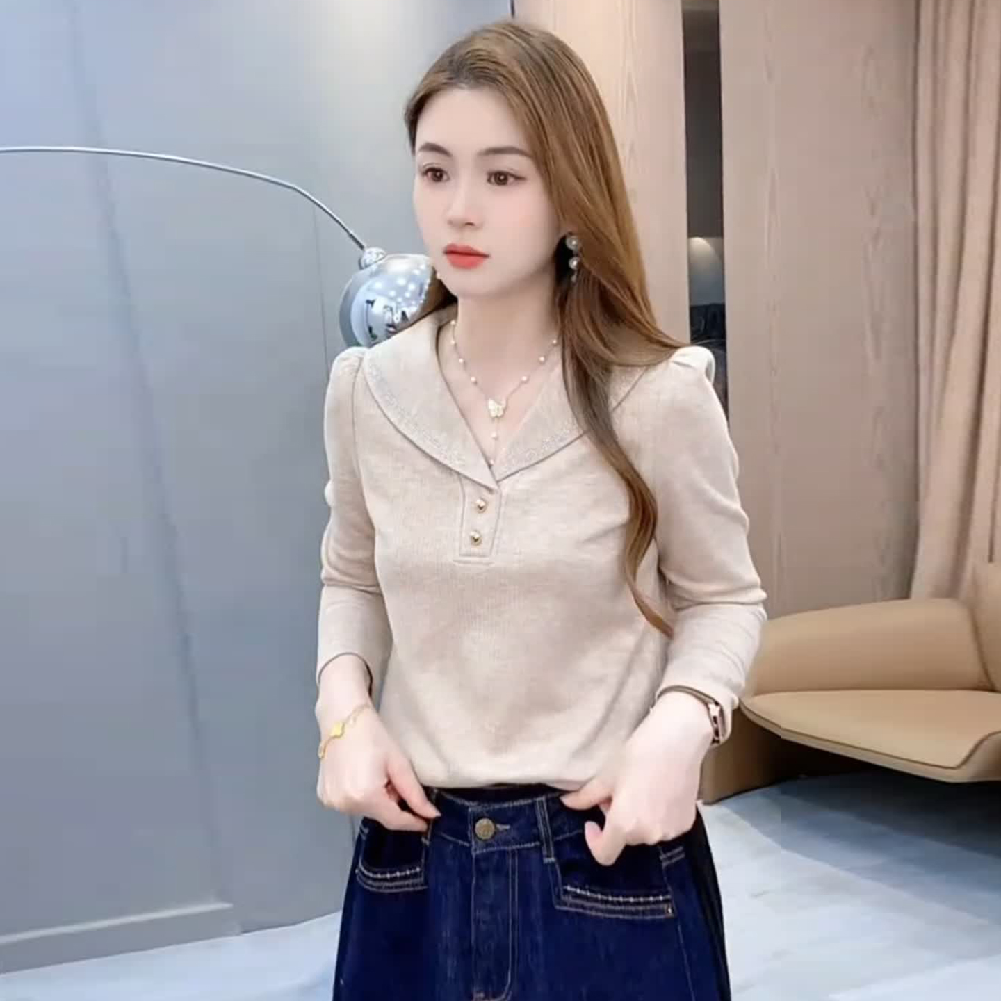2025秋冬新款长袖V领衬衫女时尚洋气显瘦百搭加绒减龄打底衫衬衣