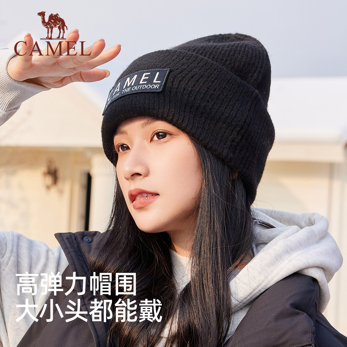 骆驼针织帽2025年新款秋冬季女经典百搭显脸小男户外保暖毛线帽子