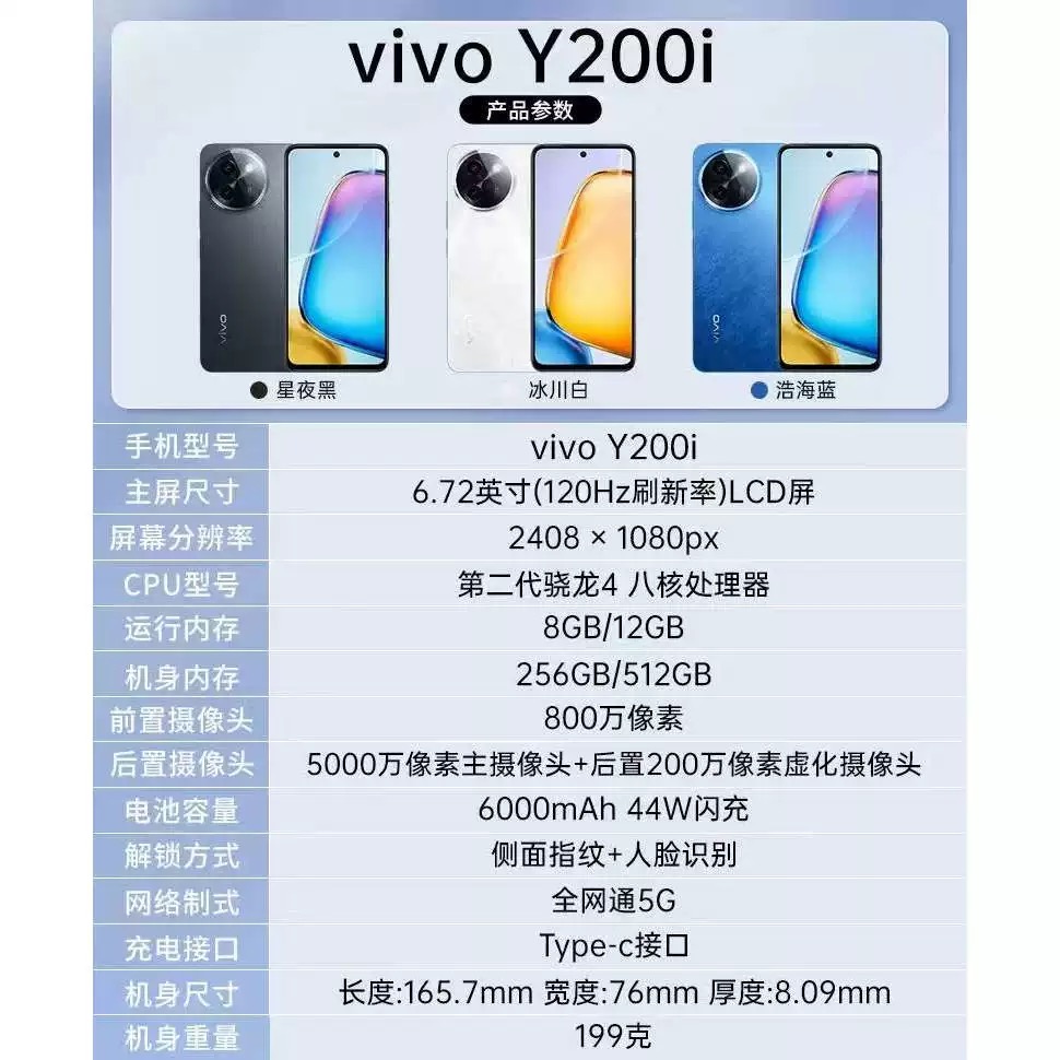 vivo Y200i 新款5G全网通 超大电池 120Hz金刚护眼屏智能学生手机