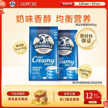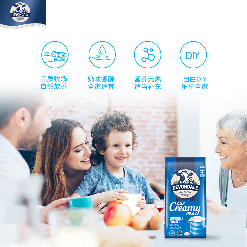 澳洲Devondale德运营养调制乳粉高钙全脂奶粉1kg*2袋牛奶粉进口