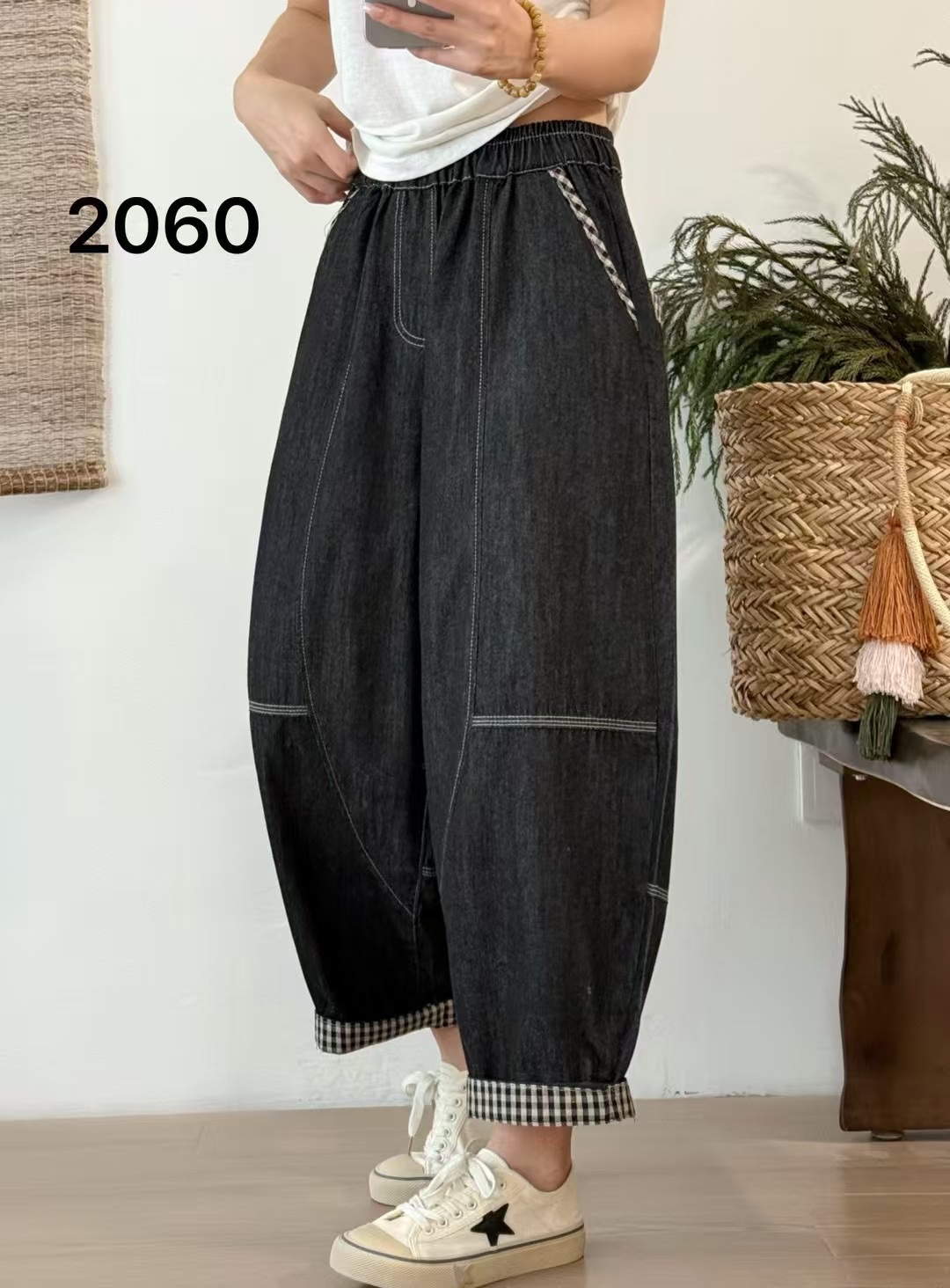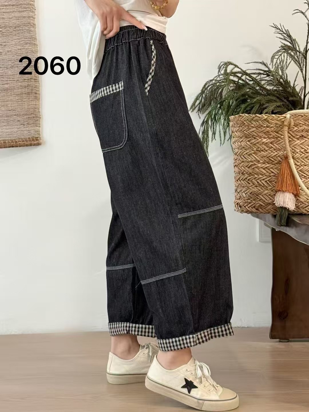 【布愫】夏季薄款卷边百搭宽松显瘦大码黑色牛仔裤女九分阔腿裤潮