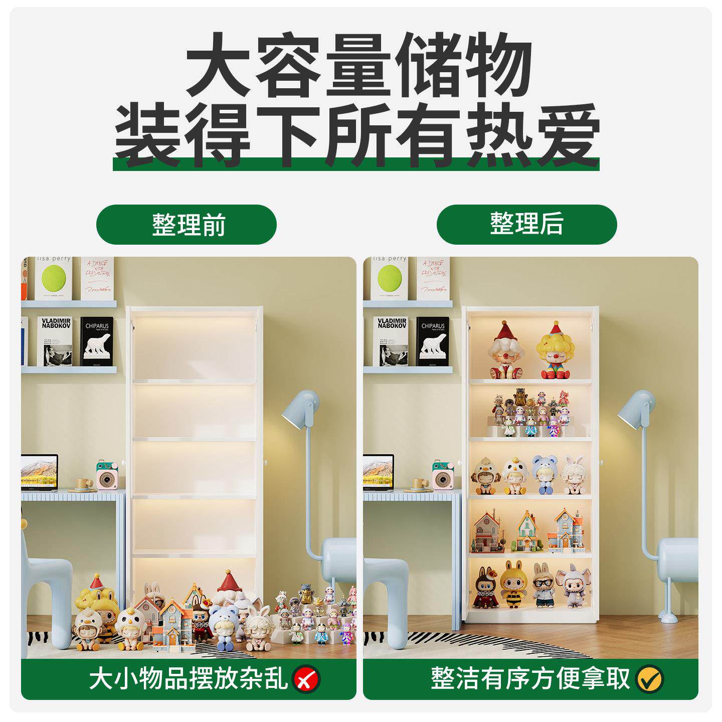 书柜书架家用客厅置物架一体靠墙可移动儿童收纳柜书房墙角展示柜