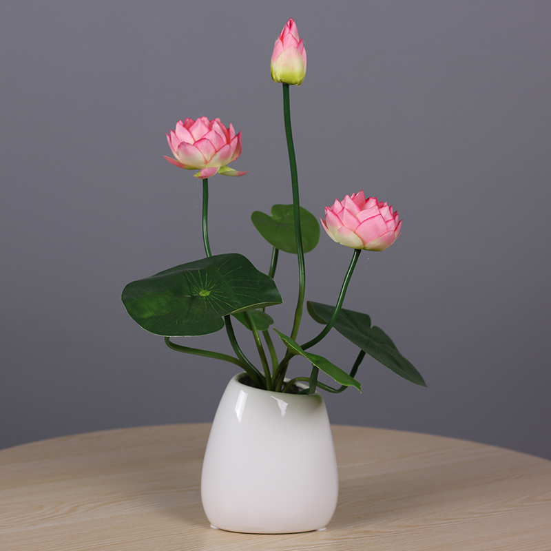莲花荷花仿真花假花塑料花中式陶瓷摆件电视柜隔断吧台装饰品摆设