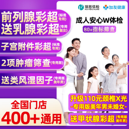 瑞慈体检美年大健康慈铭成人安心W体检卡套餐男女士中青老年父母