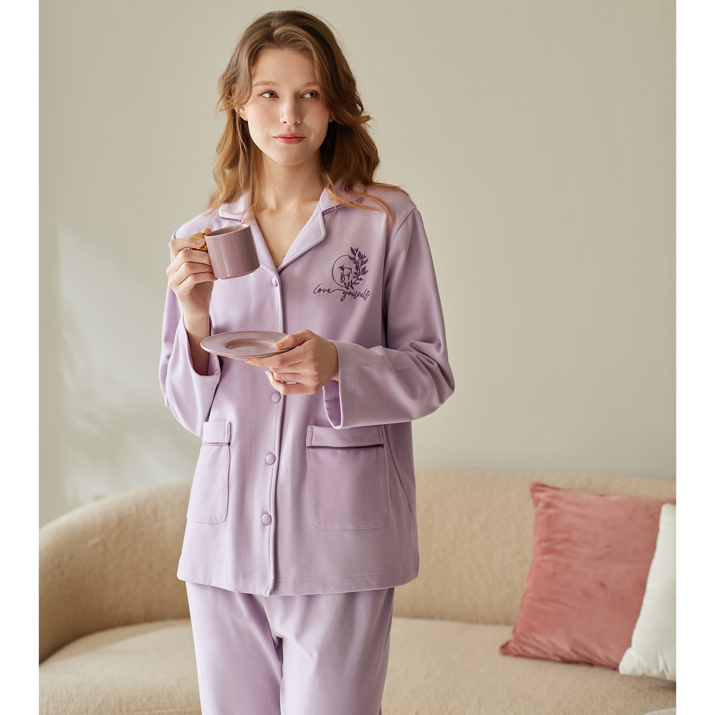 芬腾睡衣女春秋季慕斯绒长袖开衫套装女款休闲加大码可外穿家居服