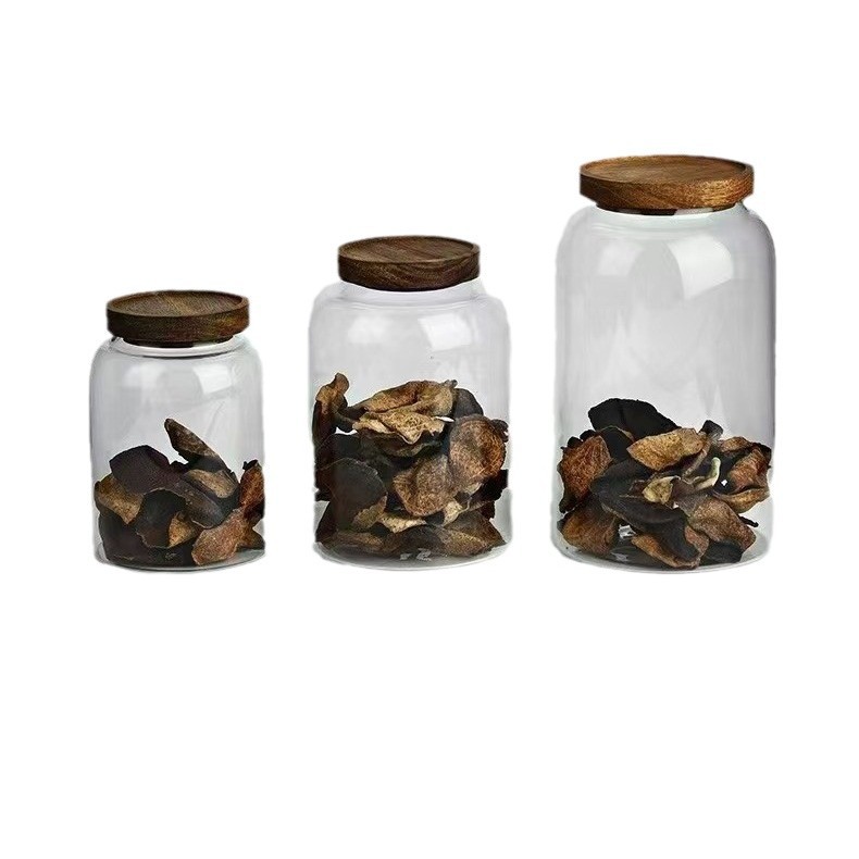 密封罐带盖高硼硅玻璃茶叶罐家用陈皮罐相思木盖耐热杂粮罐防潮