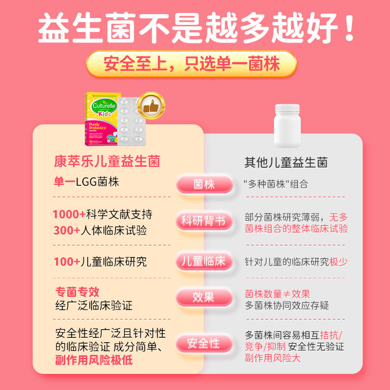 美国Culturelle康萃乐儿童LGG益生菌咀嚼片30片 *2 舒缓肠胃
