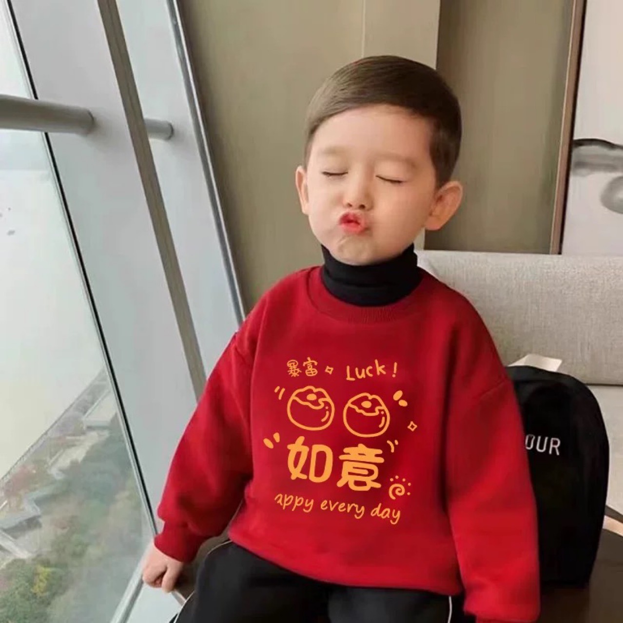 2025新款过年高端亲子装一家三口棉卫衣家庭装红色喜庆童装连体衣