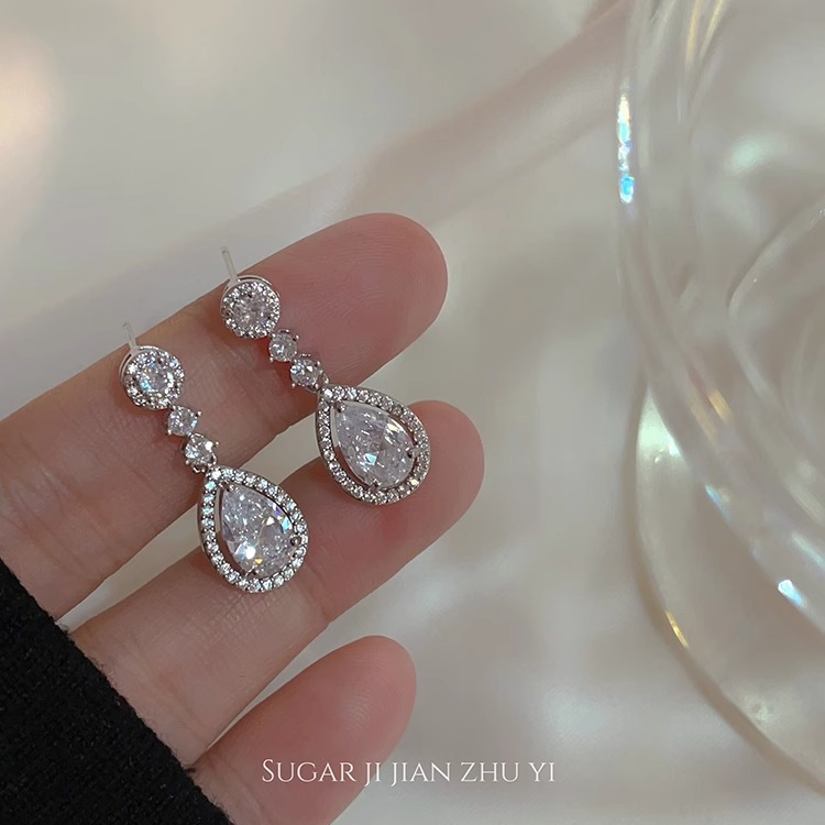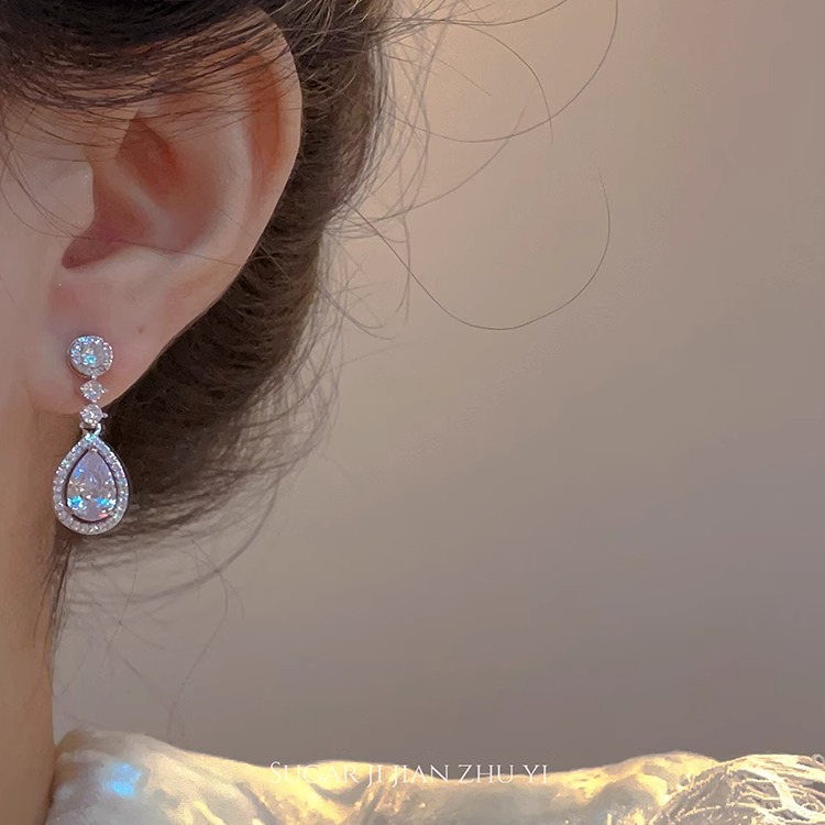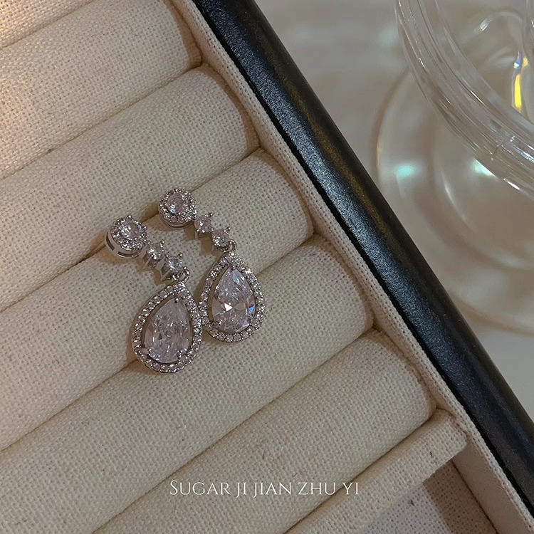 轻奢闪钻水滴耳环女气质名媛高级感耳钉精致小众设计时尚个性耳饰