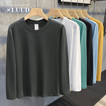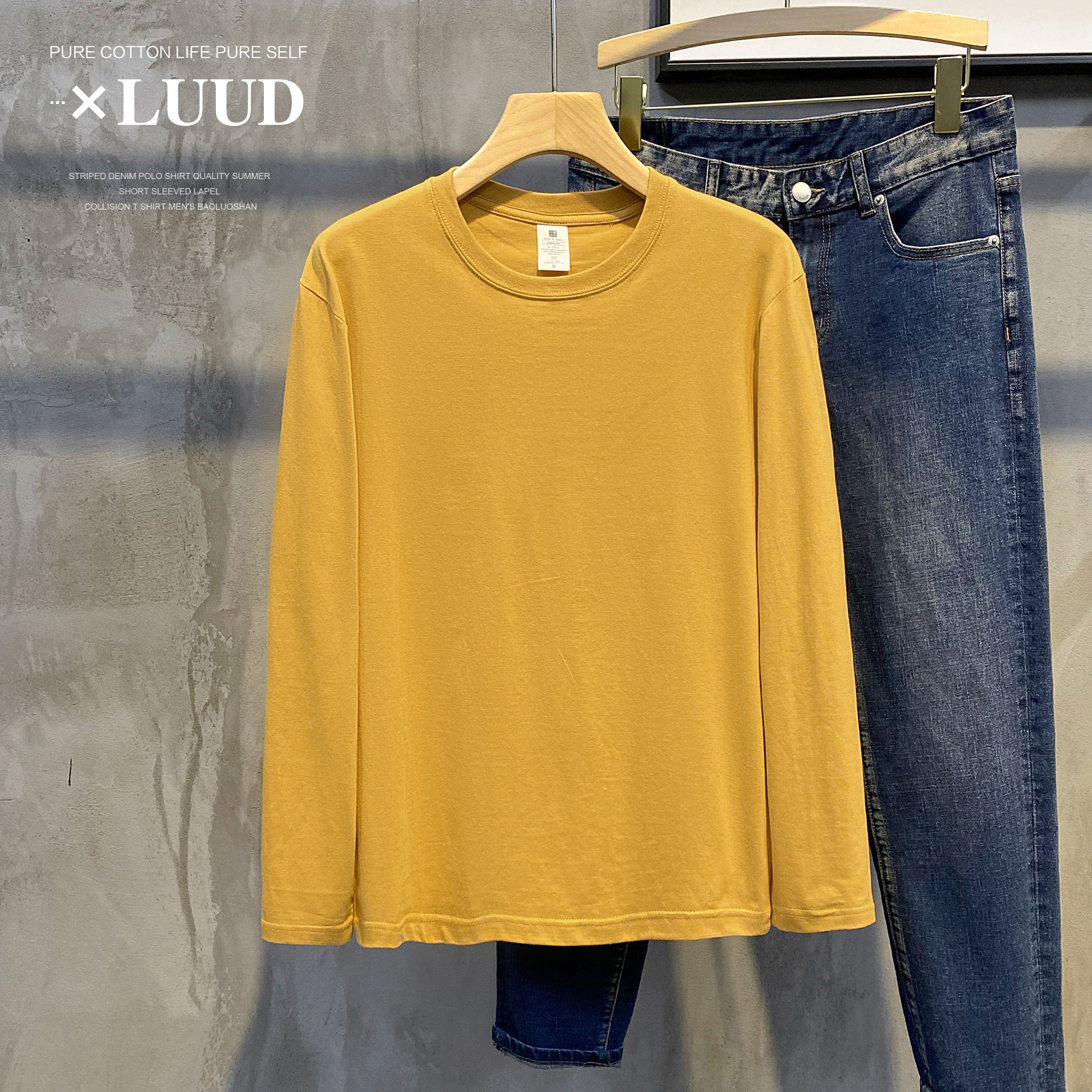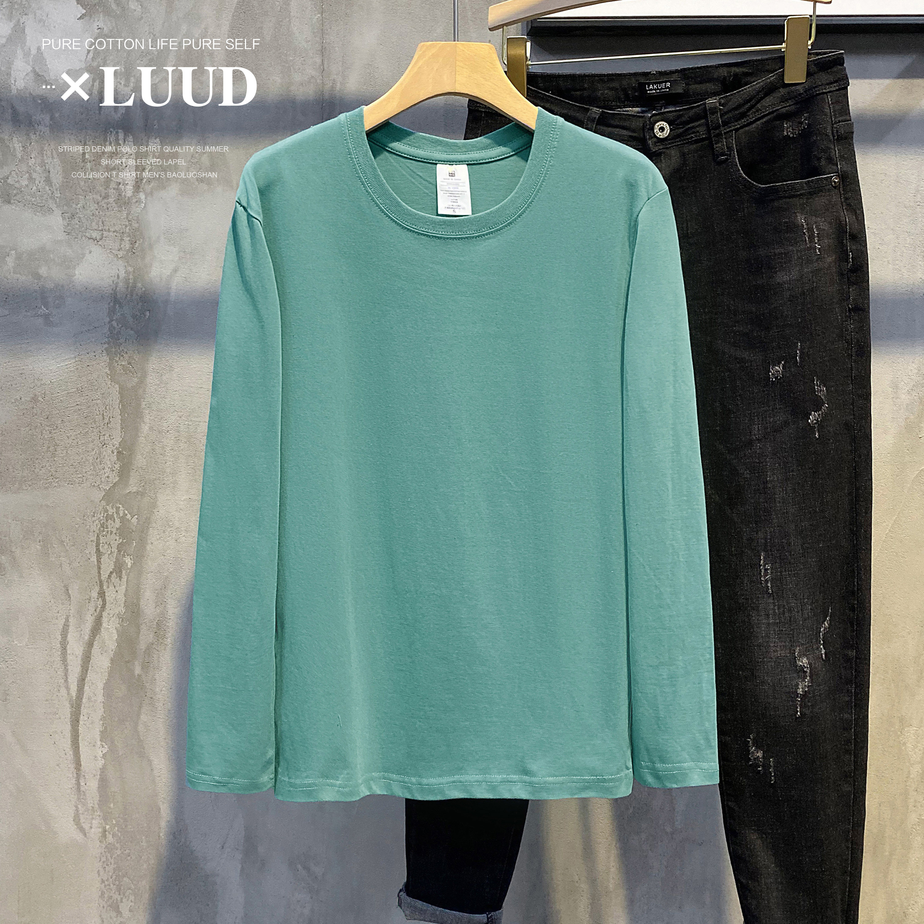 LUUD 纯色精梳棉秋季百搭款打底衫体恤男休闲纯棉长袖圆领T恤上衣