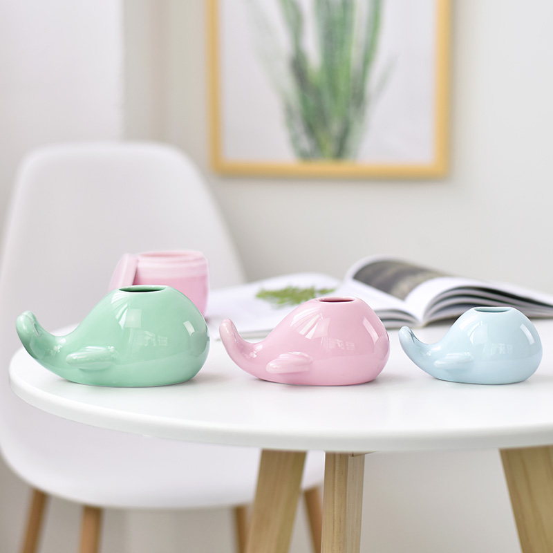 不单典雅陶瓷鲸鱼花瓶大中小号小清新青瓷水培插花器客厅家居摆件