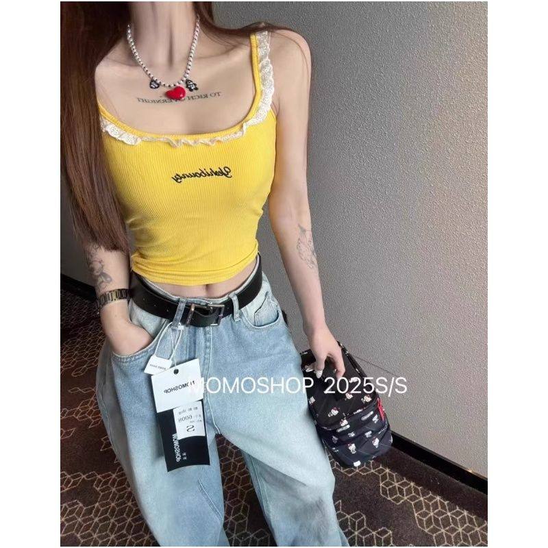 清仓捡漏~专柜撤回余花边吊带背心设计感辣妹带胸垫搭内打底上衣