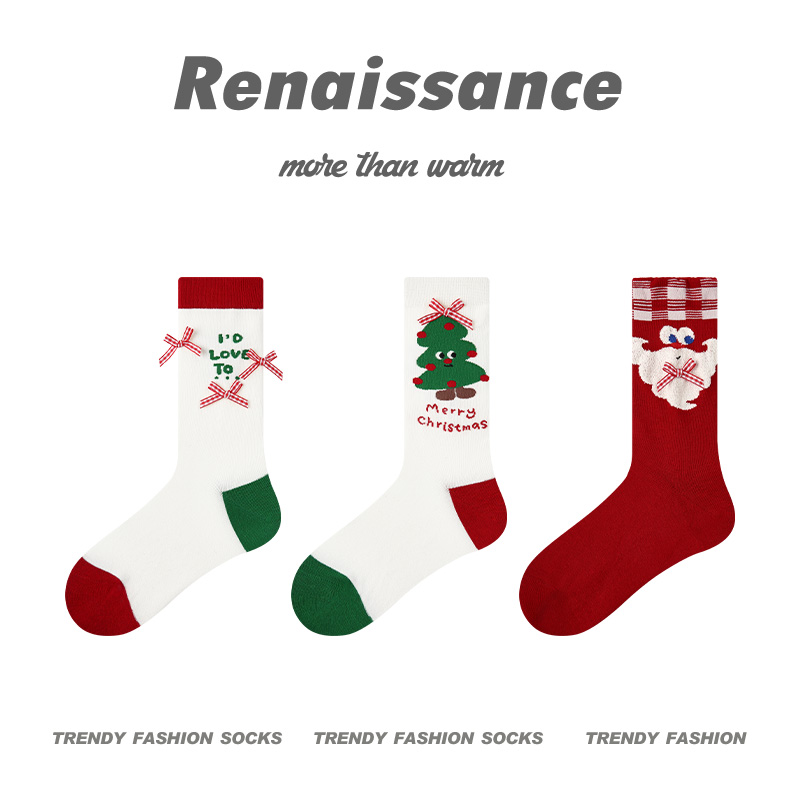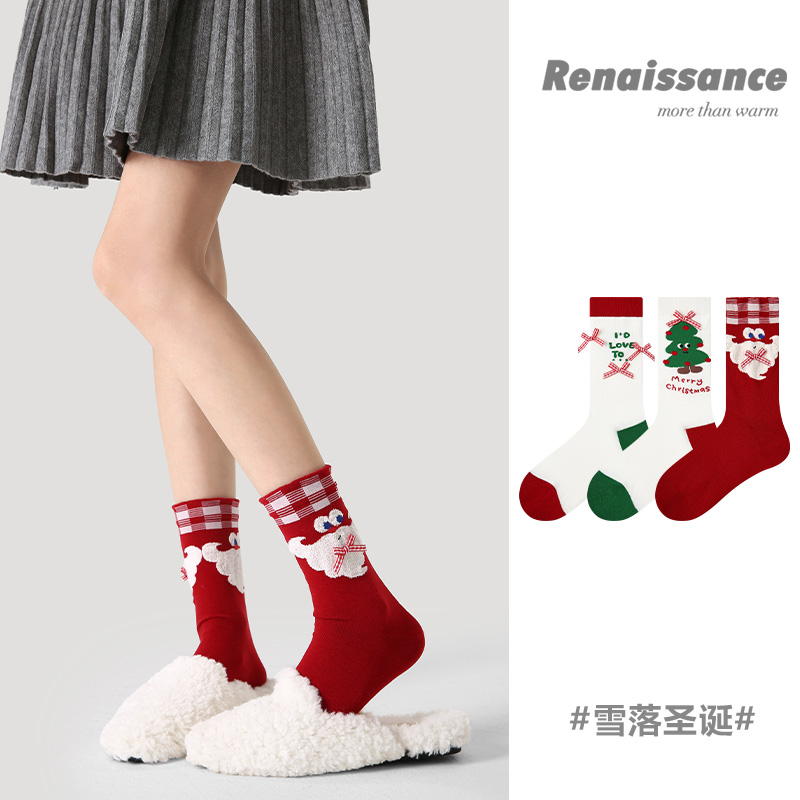 拉夏莉亚圣诞节袜子圣诞袜女士中筒袜装饰礼物红色礼物袋礼品秋冬