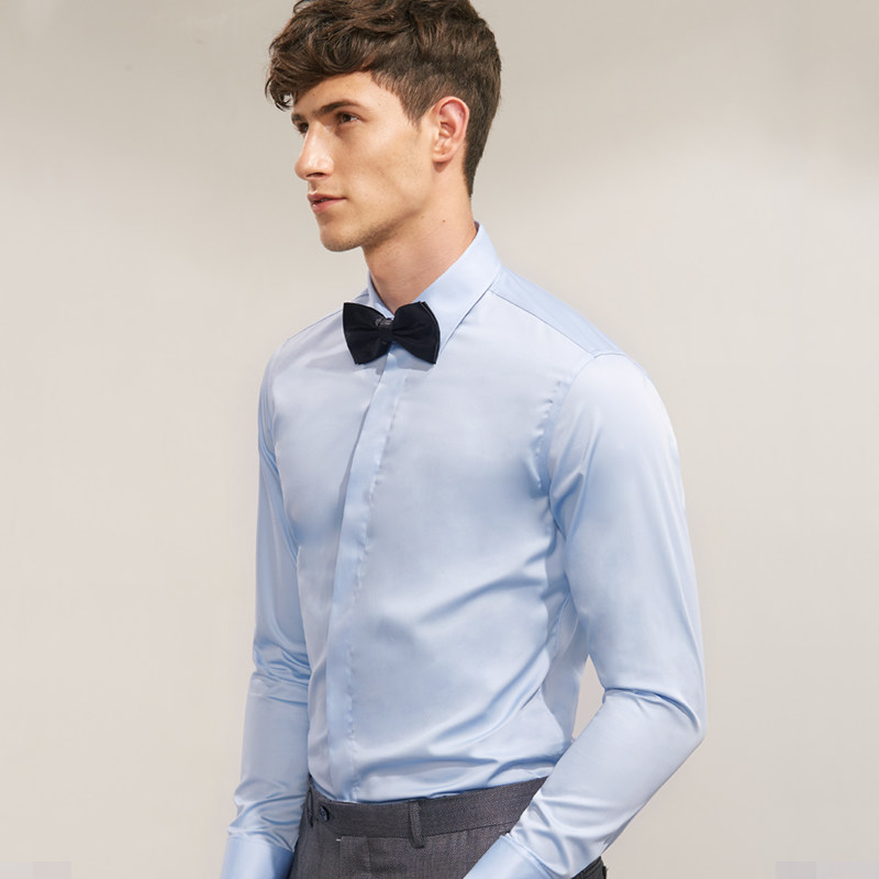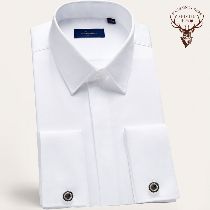 十米布丝光棉长袖法式衬衫男袖扣小方领新郎商务伴郎修身纯棉衬衣