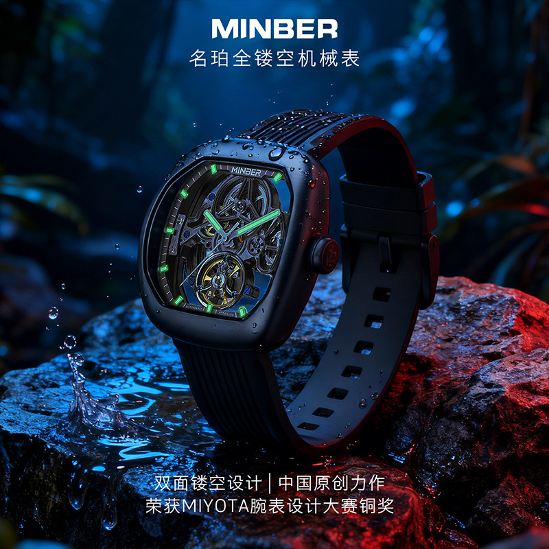 minber男士机械手表防水镂空设计简约机械表腕表自动时尚礼物