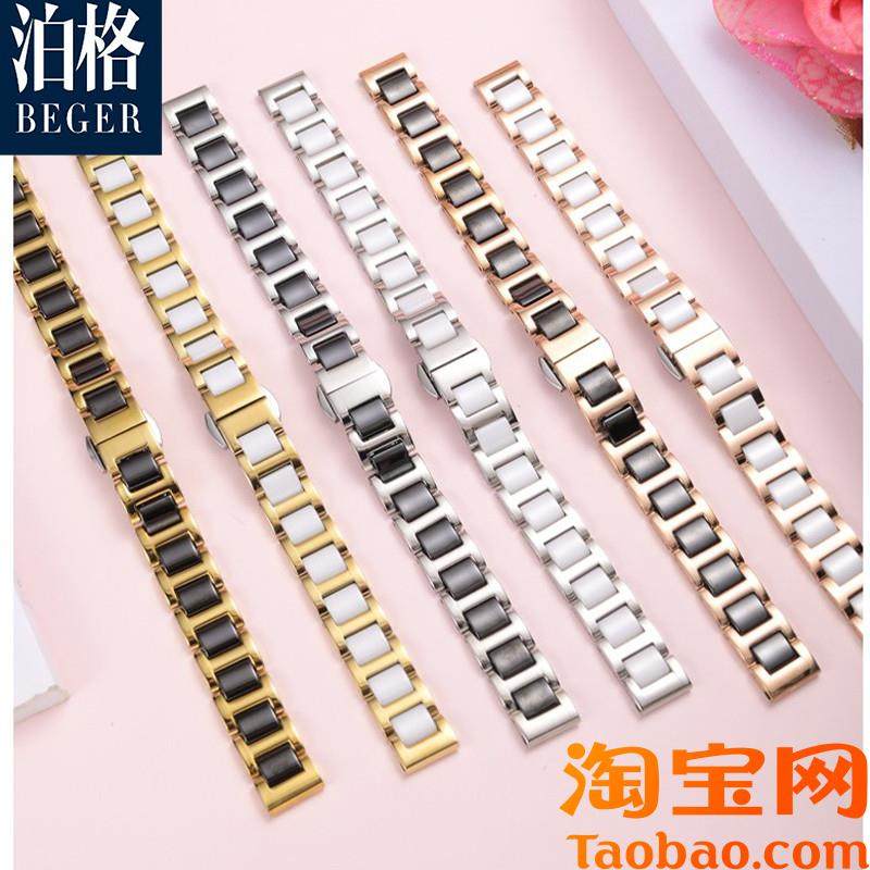原装适配陶瓷表带女精钢手表链卡西欧天梭阿玛尼DW飞亚达天王钢表