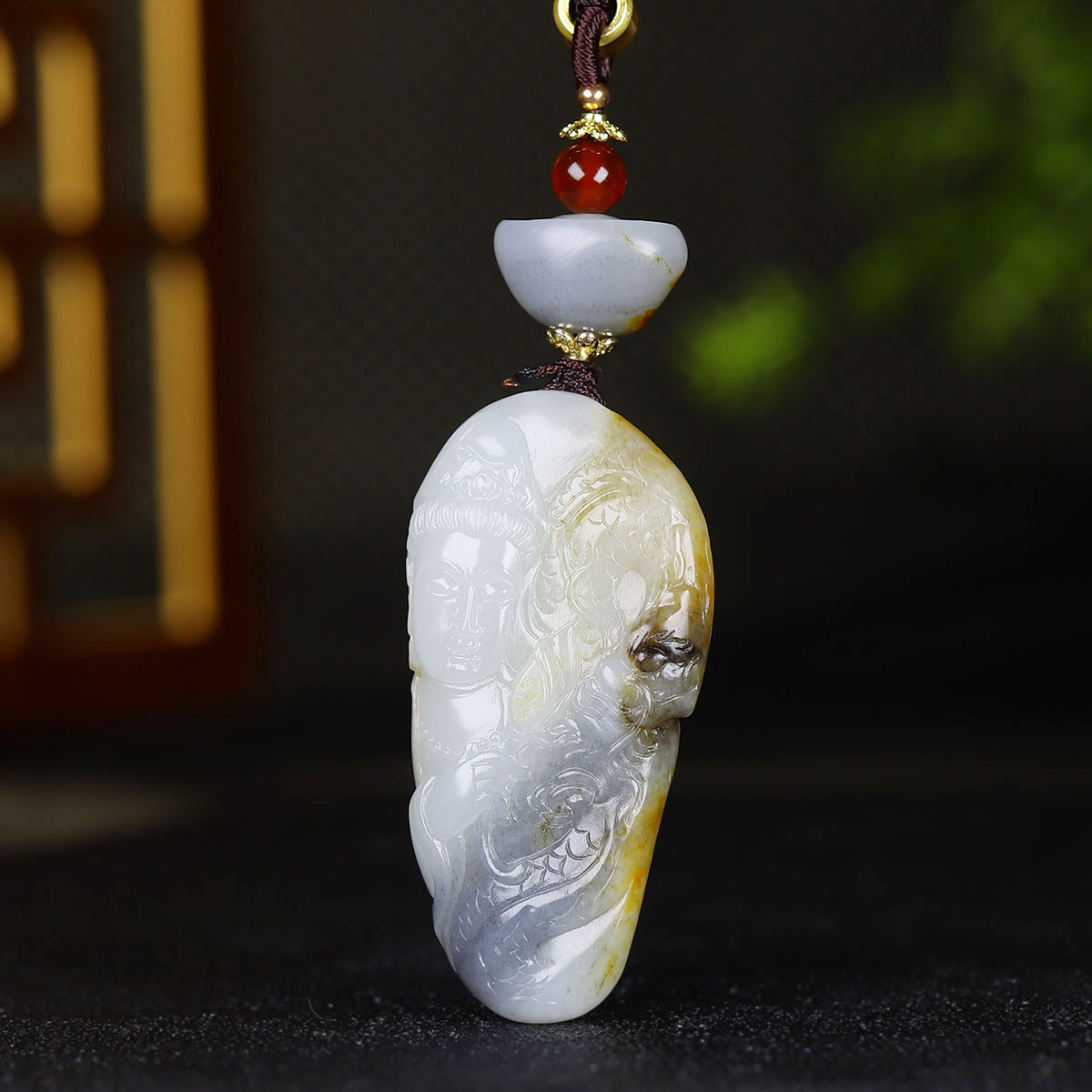 (古晨珠宝)新疆和田玉青花籽料观音挂件吊坠玉坠38g