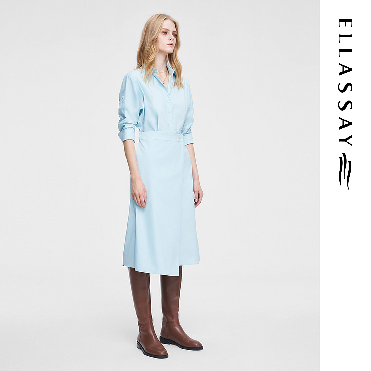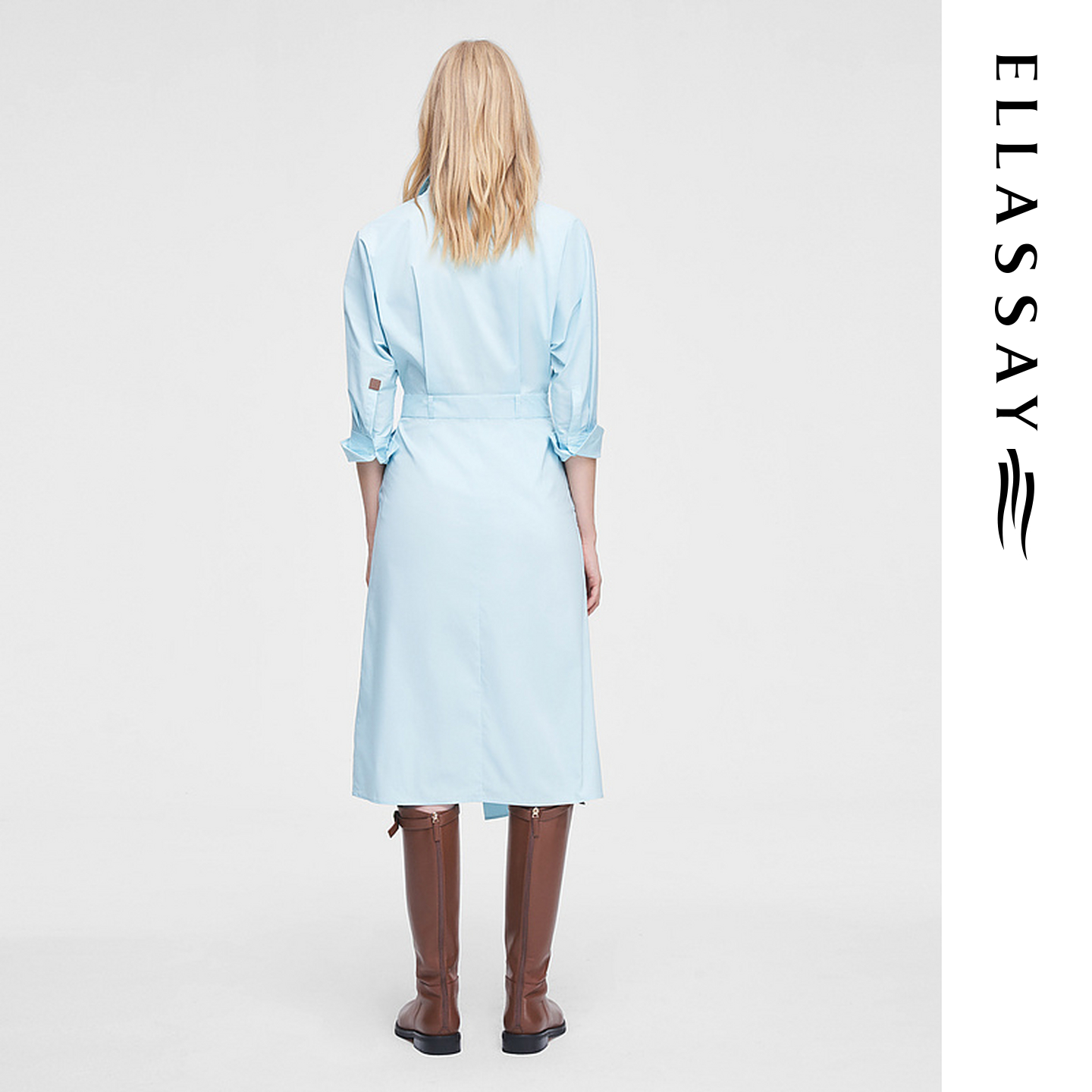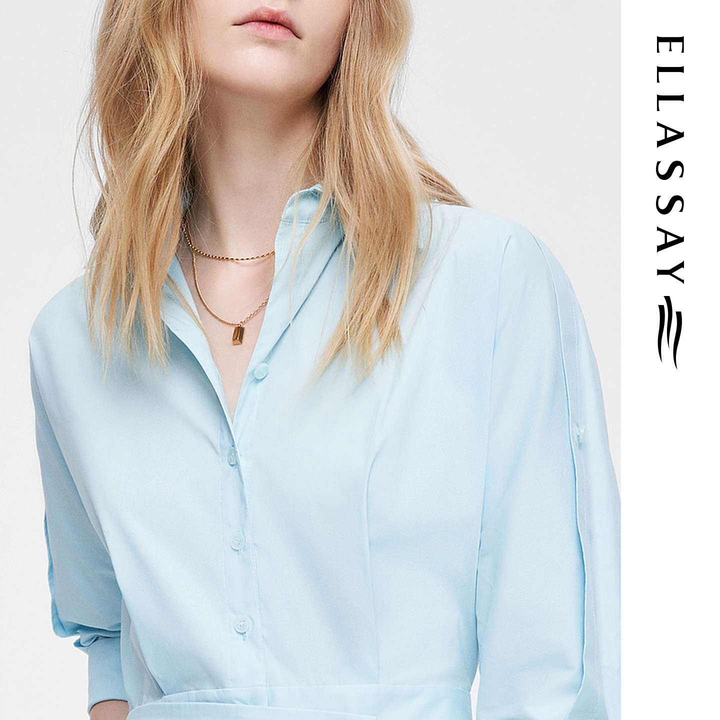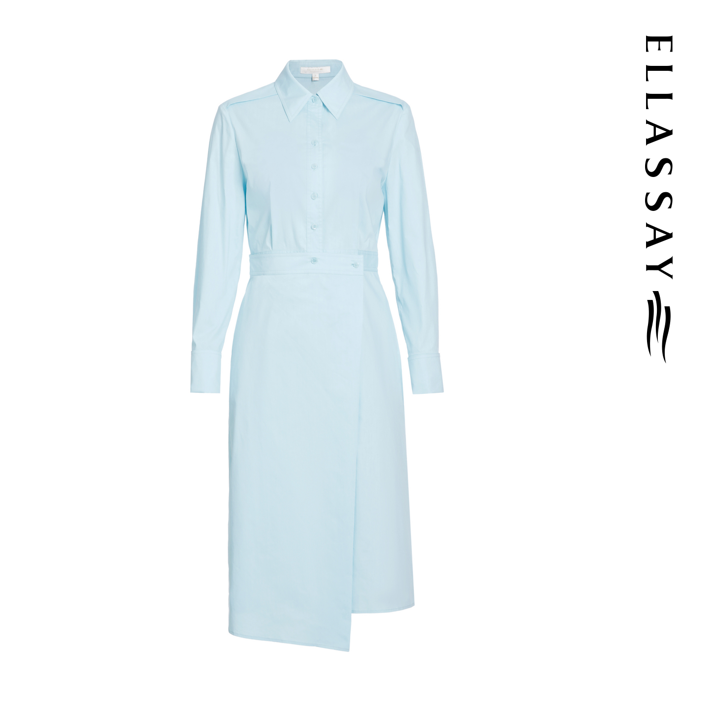 ELLASSAY歌力思棉春季新款尼斯蓝气质衬衫连衣裙女EWW351Y04700