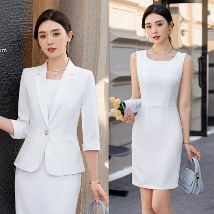职业连衣裙女两件套夏高端气质西装外套一步裙套装美容店工作服女