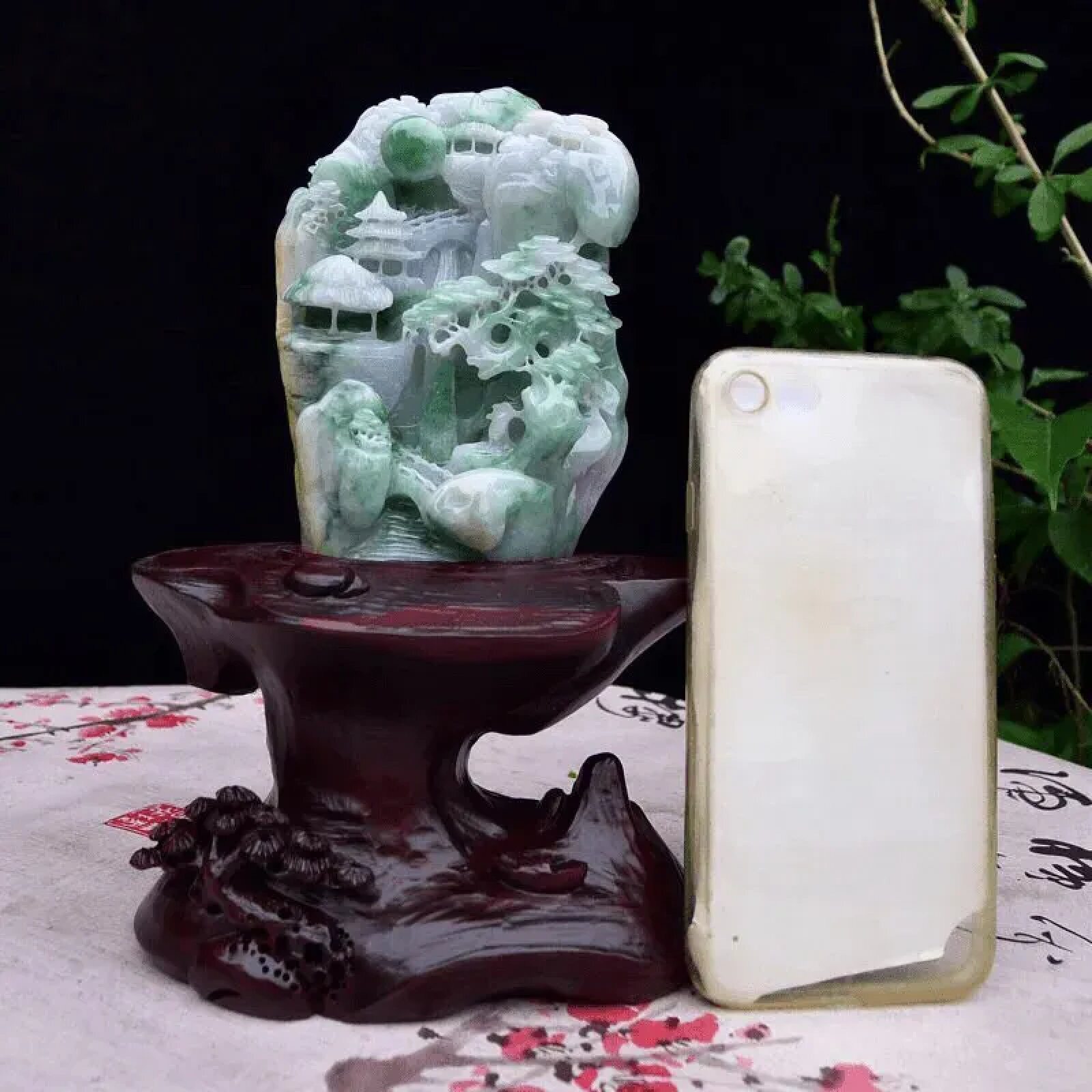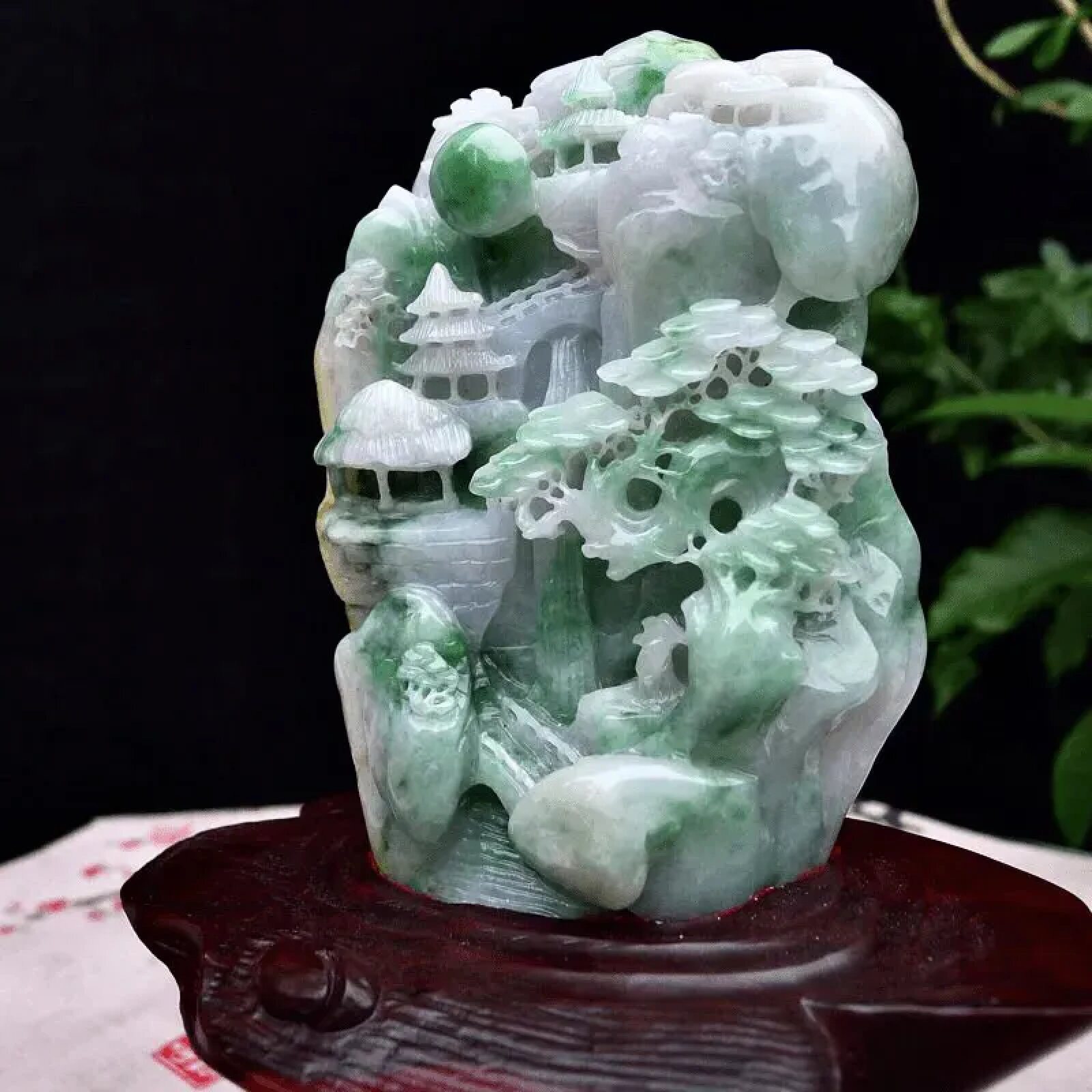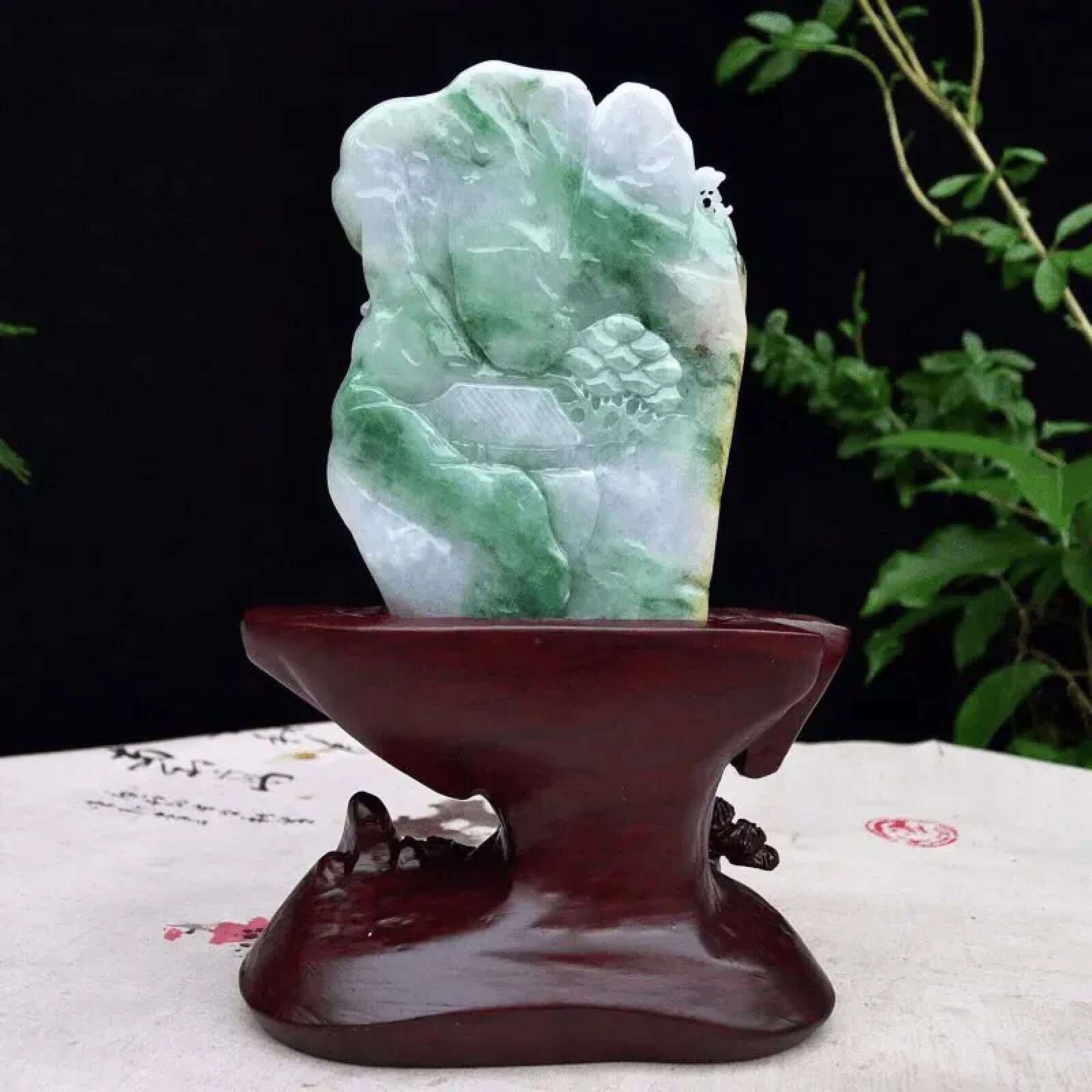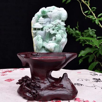 缅甸天然翡翠小山水摆件精雕高山流水书桌摆饰办公桌招财0.46公斤