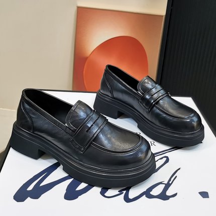 厚底圆头小皮鞋百搭英伦风乐福鞋