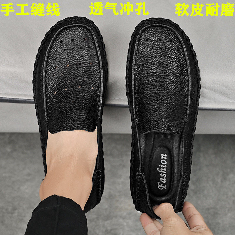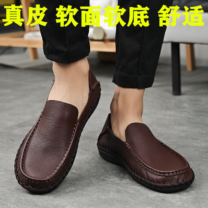男鞋一脚蹬透气户外休闲鞋47大码软底软面鞋子加肥加宽皮鞋男真皮