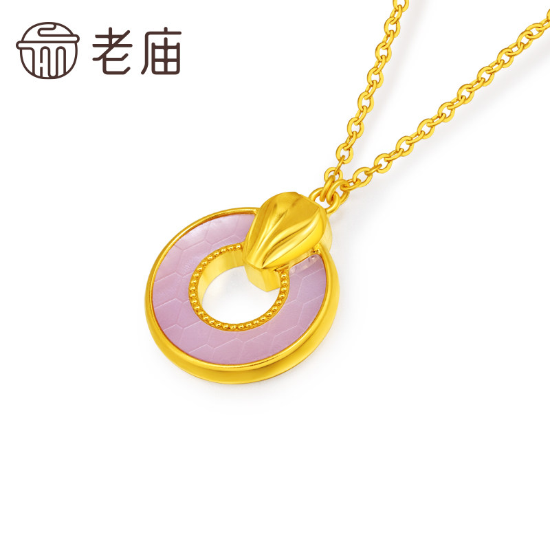 老庙黄金足金999贝壳金蛇项链5G工艺精致立体悦己小众设计时尚