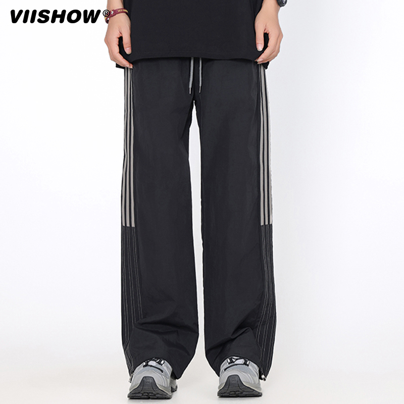 VIISHOW三条杠休闲裤男夏季2024新款宽松垂感直筒阔腿运动裤子潮