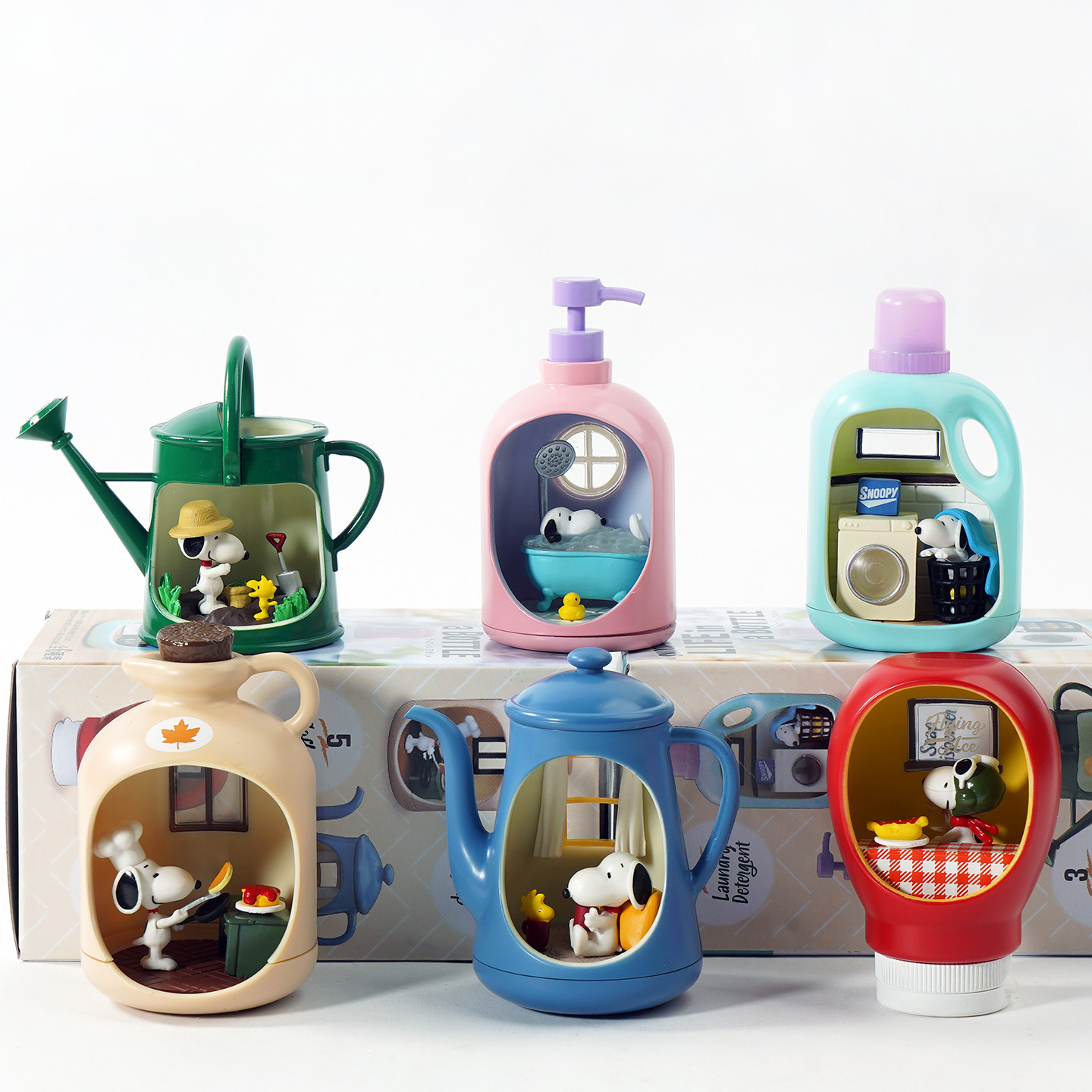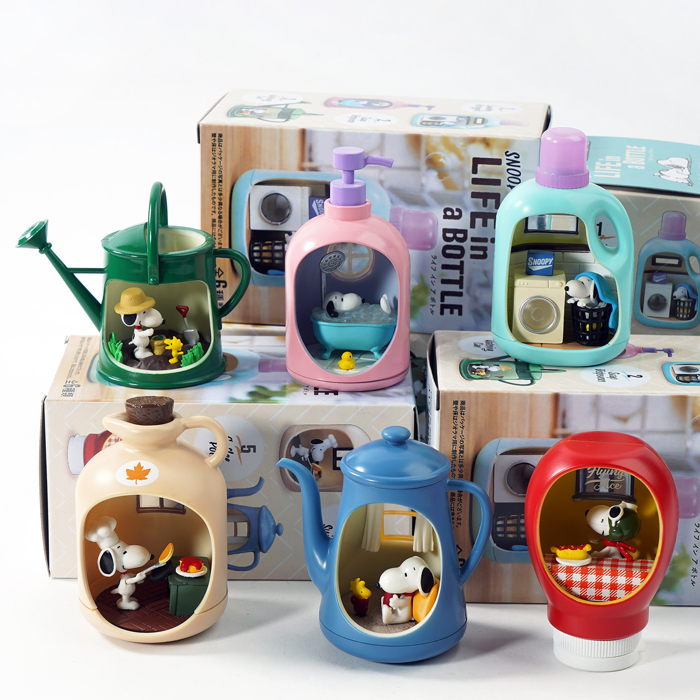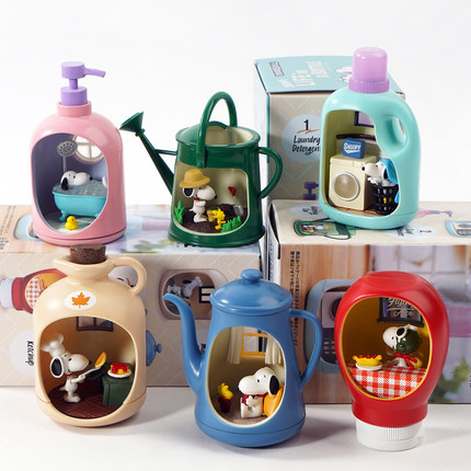 卡通史努比水壶瓶中世界微缩场景盲盒手办可爱公仔玩具收藏摆件