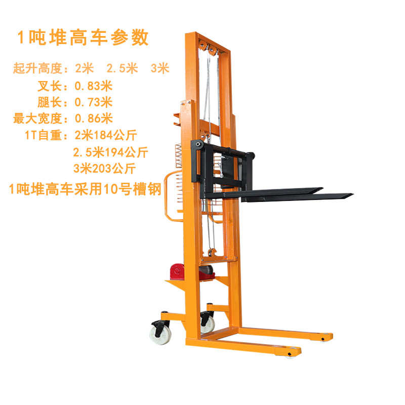 电动堆高叉车0.5吨1吨半自动铲车电动装卸升降堆高车2米2.5米3米